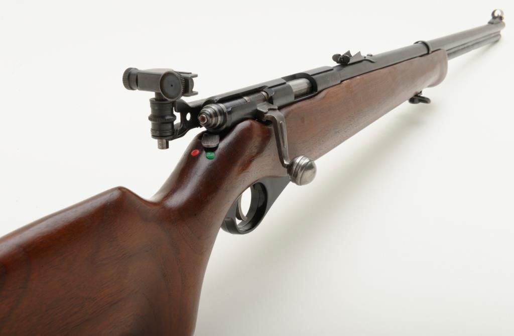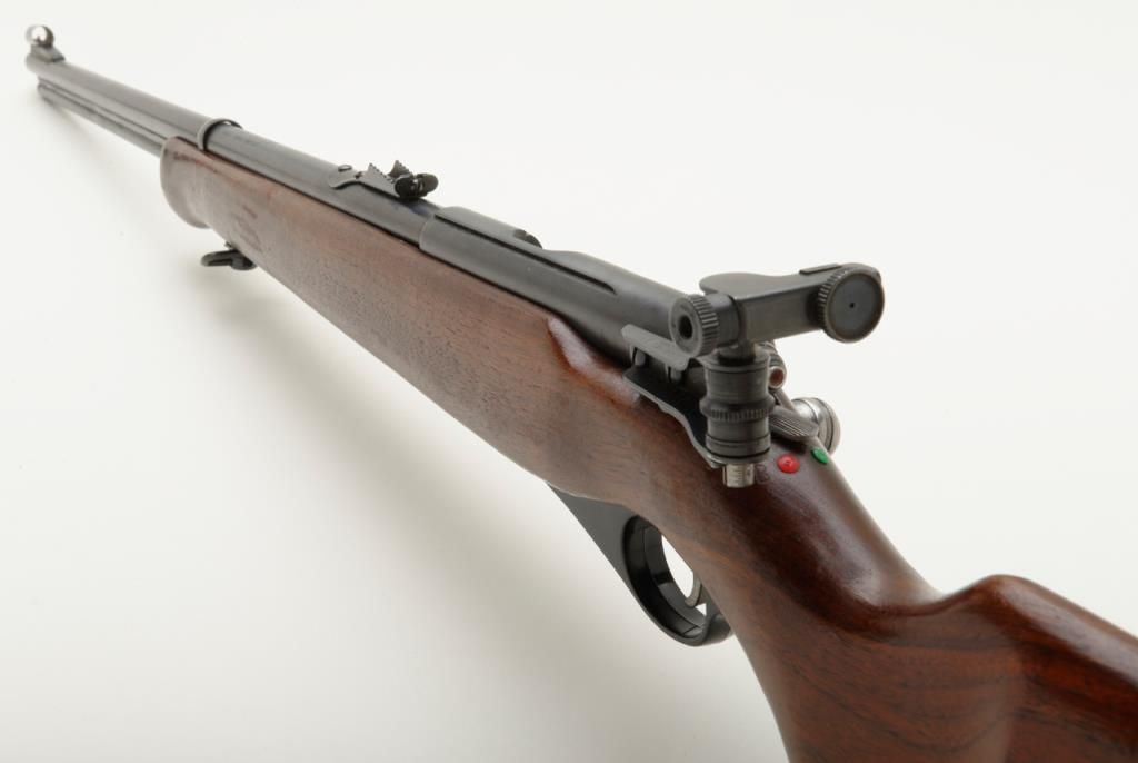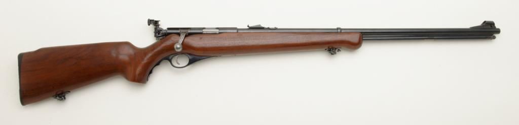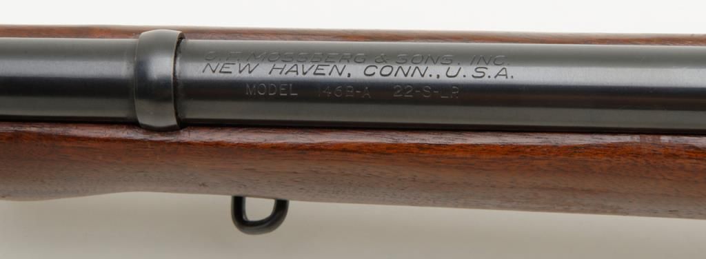 Mossberg 146B-A .22 S-LR, #NSNV, bolt action tube fed rifle with receiver mounted peep sight. Rifle is in fine condition overall, showing 92-96% original blue, with the majority of the loss at the muzzle. Bore is bright, action is good. Est. $100-200. (C&R /PPT)