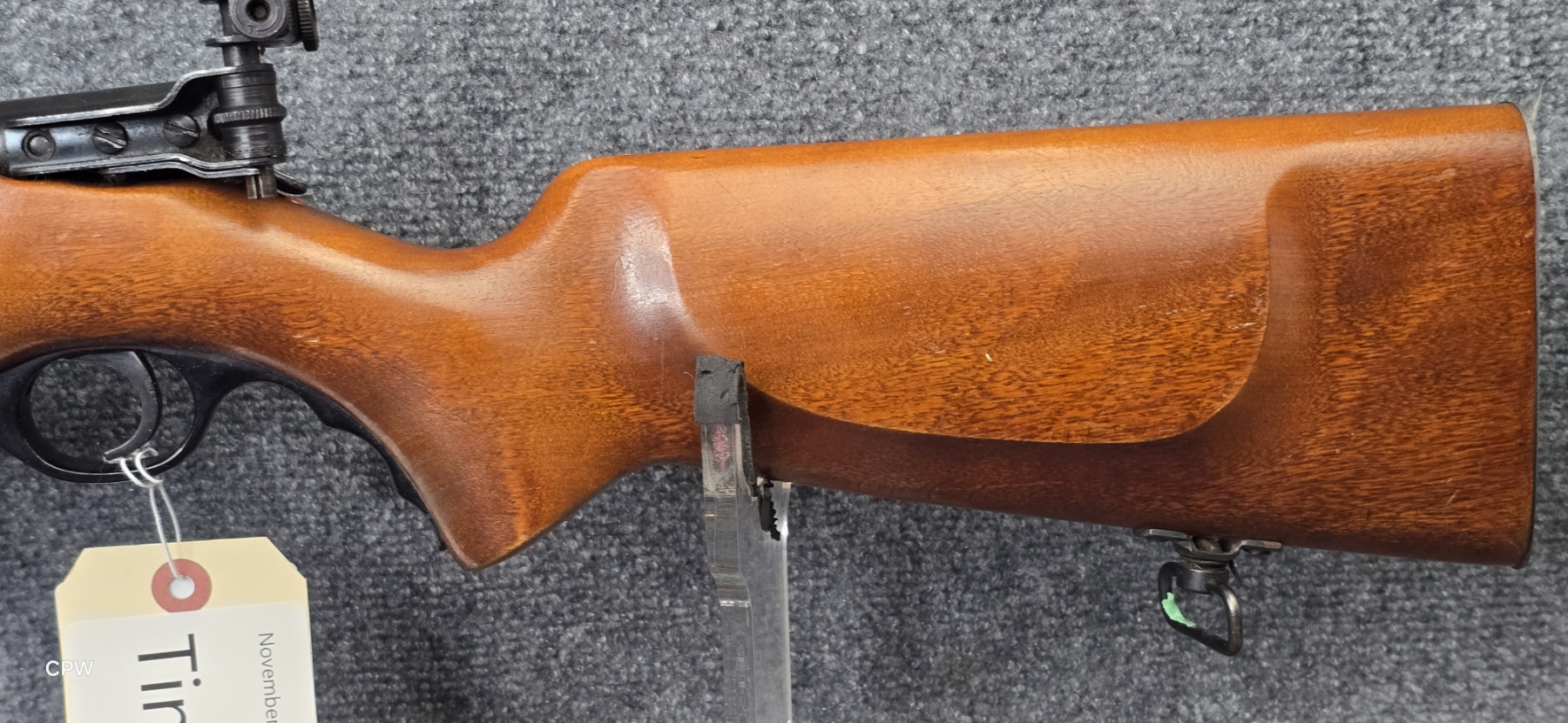 Minor marks on stock, no rust on metal, original peep sights. Box magazine