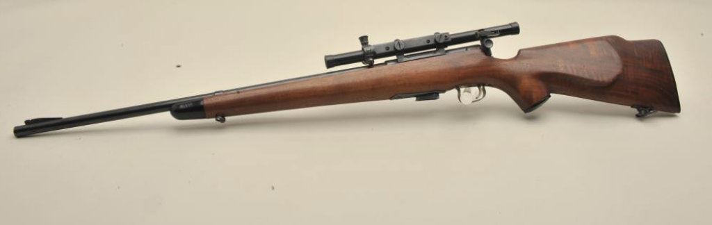 marked 2.5x scope and Mossberg No. 9 mounts. Period custom stocked in very good plus overall condition. (C&R) Est.: $150-$300