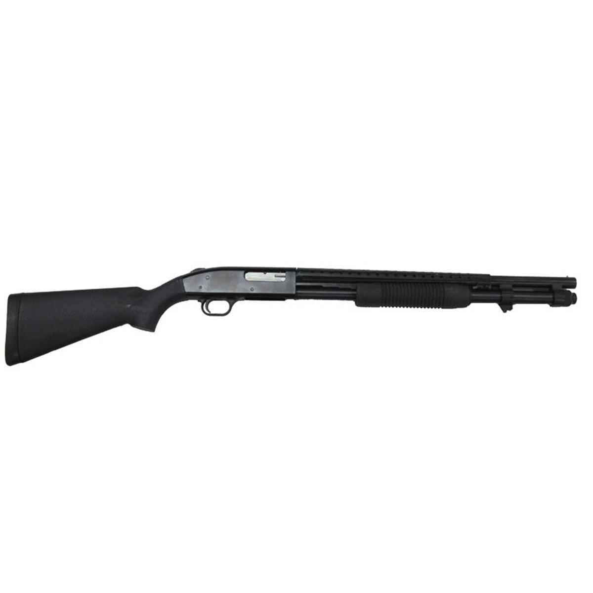 Mossberg 590 12 ga, 3" SN:R762736 Pump action home defense/tactical shotgun with matte black finish, black synthetic stock, and ribbed pump handle, 21" barrel, for 3" shells, with heat shield and bead front sight. Good bore and action. Includes origiPump action home defense/tactical shotgun with matte black finish, black synthetic stock, and ribbed pump handle, 21" barrel, for 3" shells, with heat shield and bead front sight. Good bore and action. Includesoriginal box and manual. Condition: Near new with no sign of use.