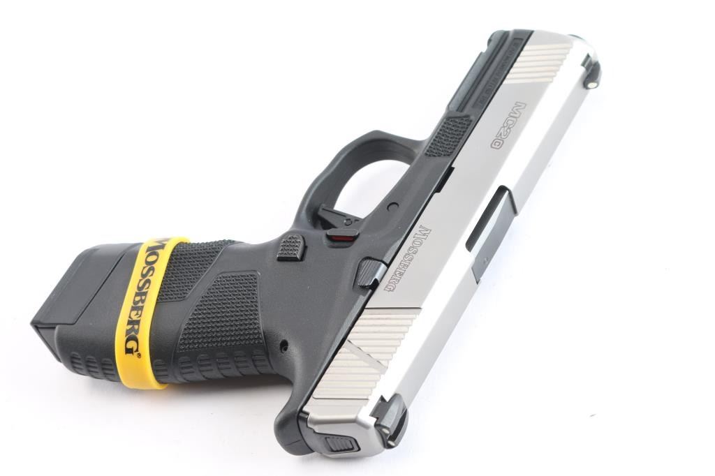 Sporting double-stack magazines. Features angled fore & aft slide serrations. Sights are dovetail mounted, white 3-Dot configuration. Frame is high-tensile strength with grip texturing and palm swell. A front rail for accessories mounting. Trigger has a flat-profile and integrated blade safety. Trigger guard is oversized. Stainless steel slide with 3.9 inch barrel. Comes with factory box. two 16 round mags and manual. Bore is pristine, pistol is in like new condition.