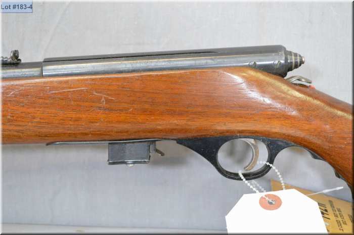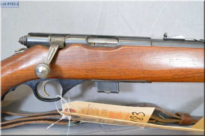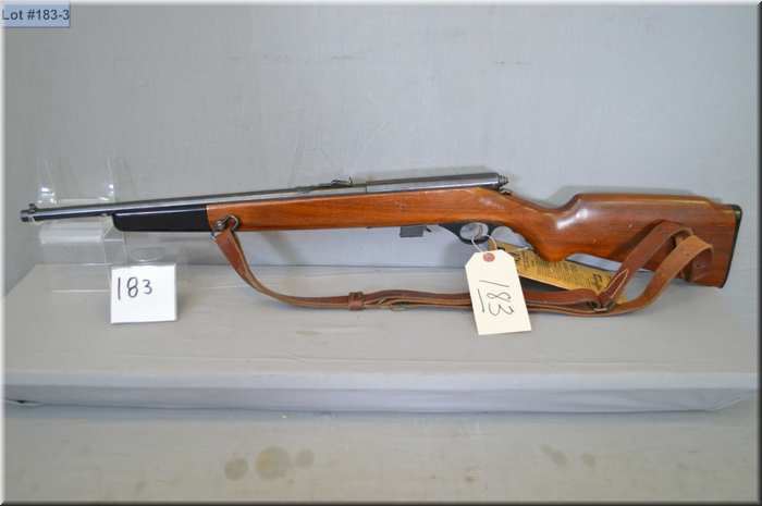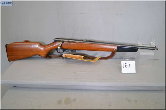 Mossberg Mod 142K .22 LR cal mag fed bolt action Rifle w/18 1/4' bbl [ blued finish, barrel sights, walnut stock w/nylon fold down forend, few marks, leather sling, w/ hanging tag c/ w old gun case ] Ser # Nil