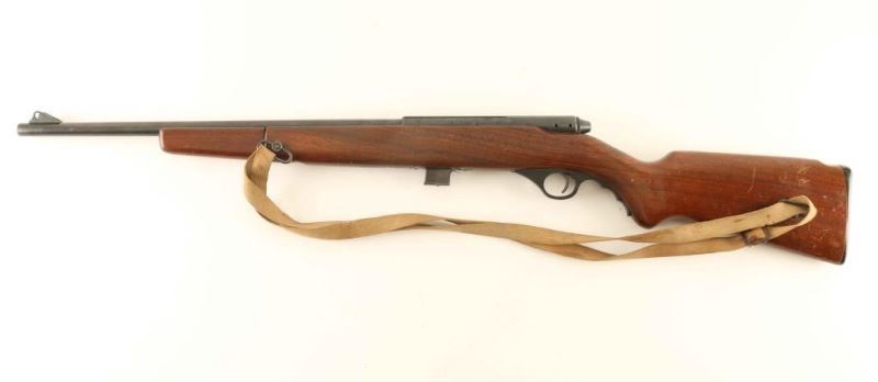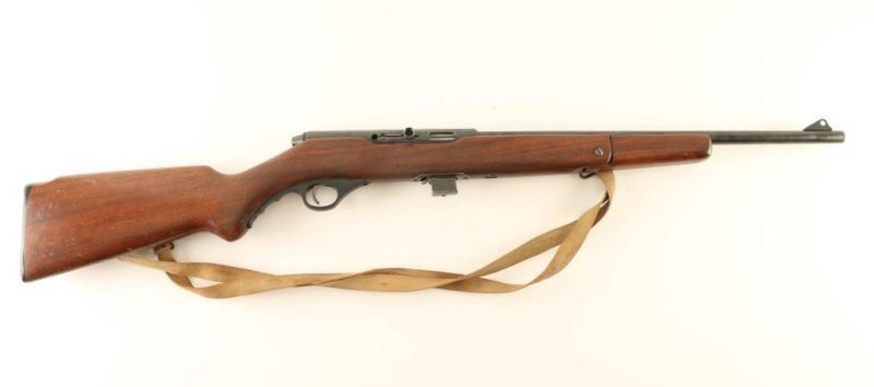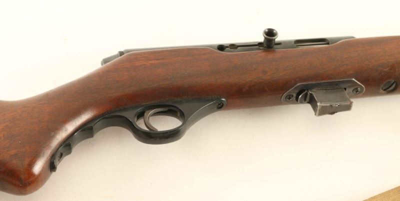 Blued semi auto 22 long rifle with 18" barrel. Bore is dark with faint rifling. Bluing is in fair condition with light corrosion. Wood stock in fair condition with dings and scratches. One magazine and canvas sling. Missing Receiver Sight. NRA Fair ***Modern Firearm***