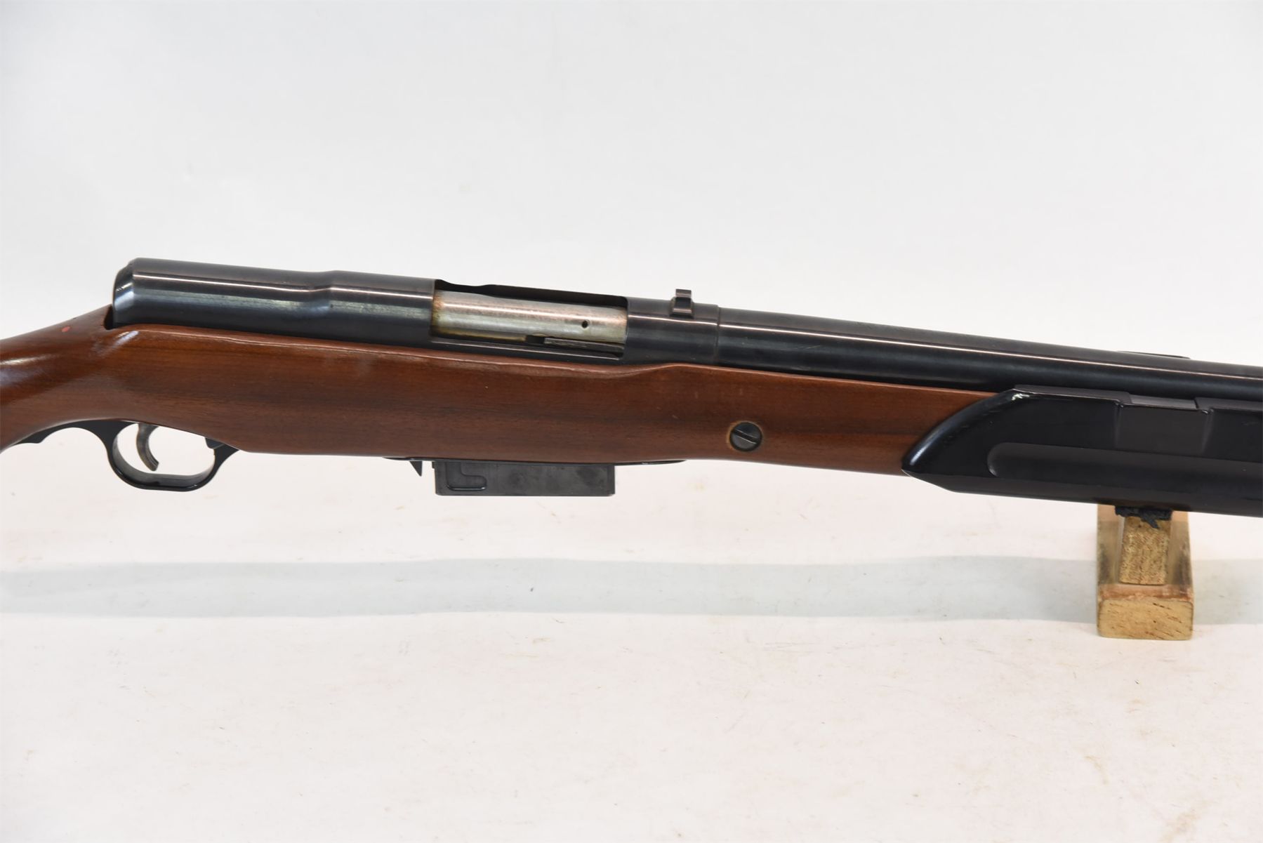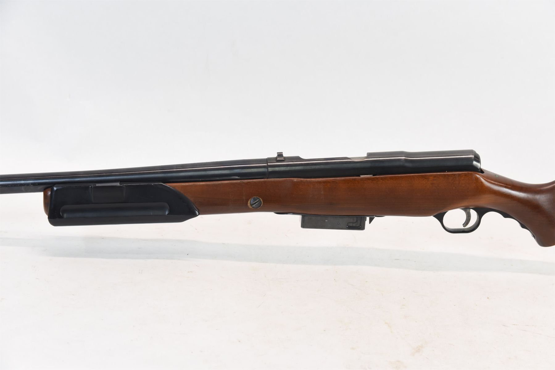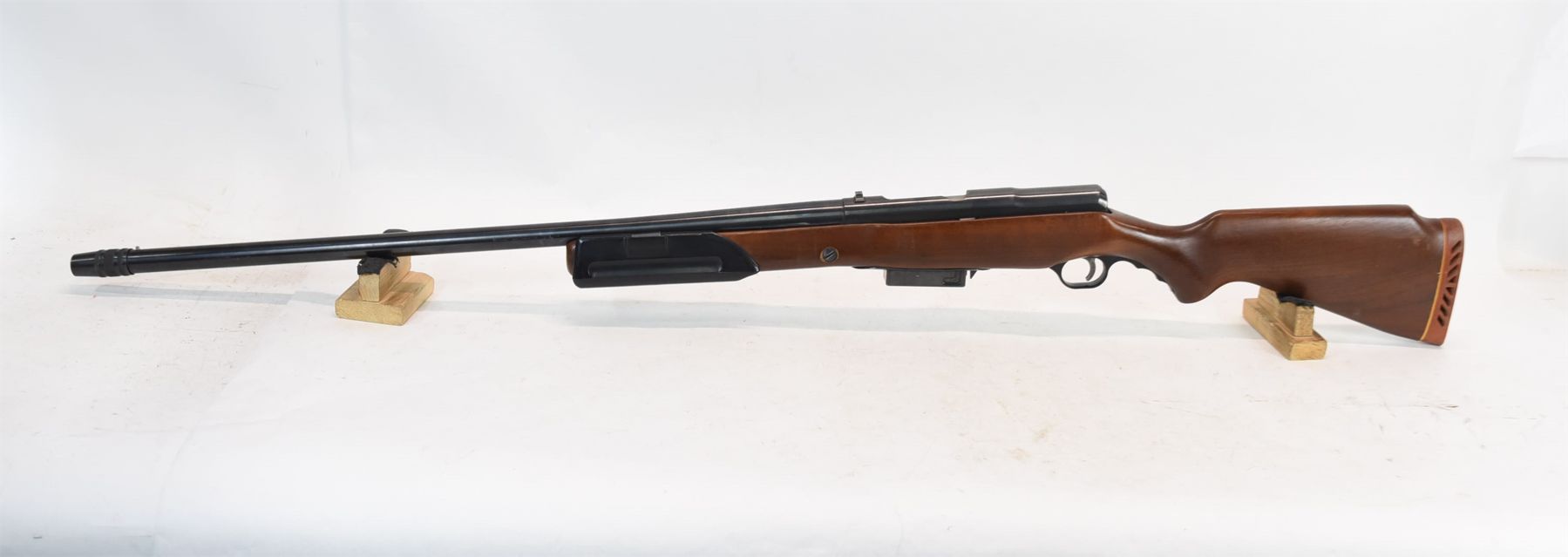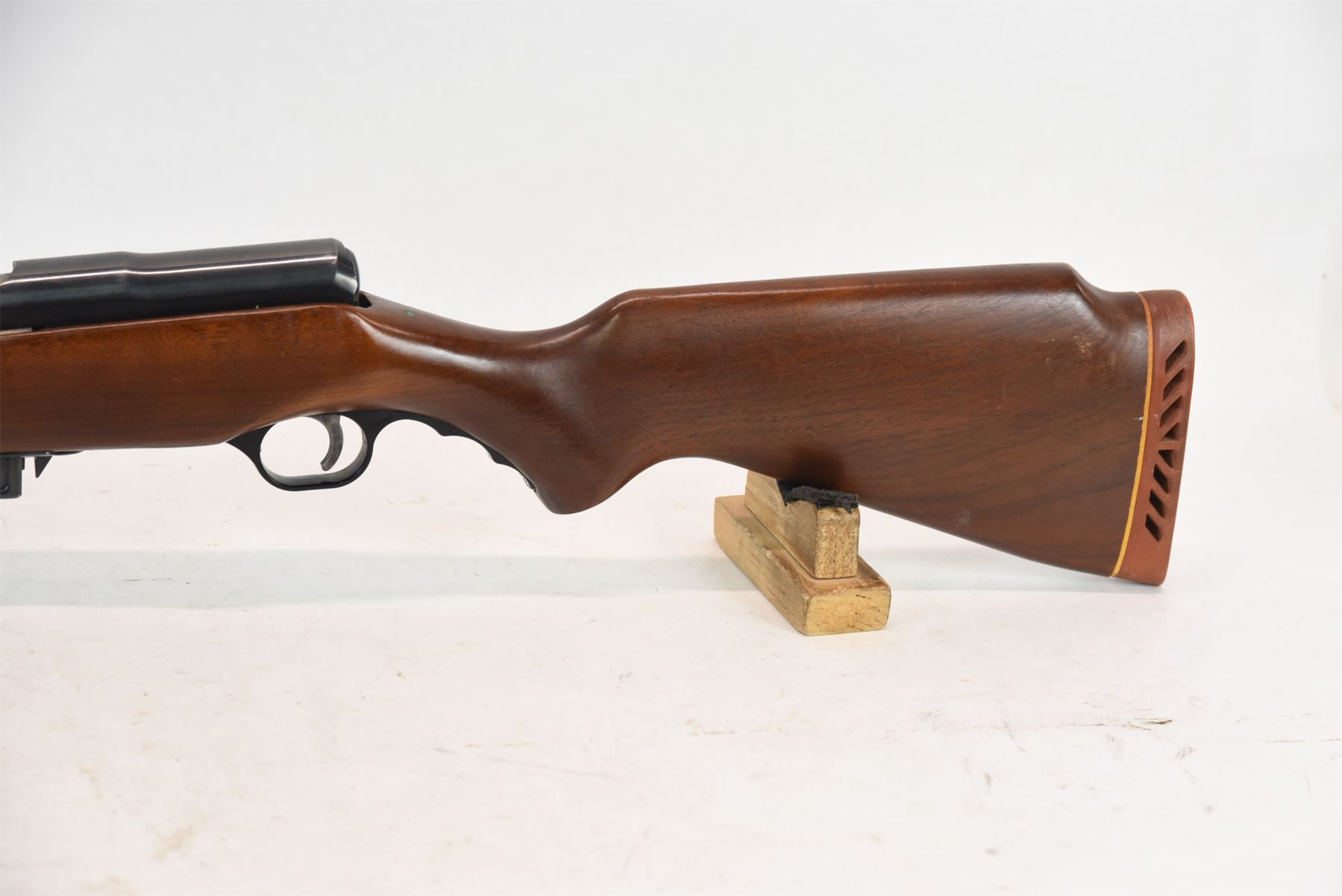 The wood is very good with a few light marks. The bluing is good. The bore is very good. The safety is missing.