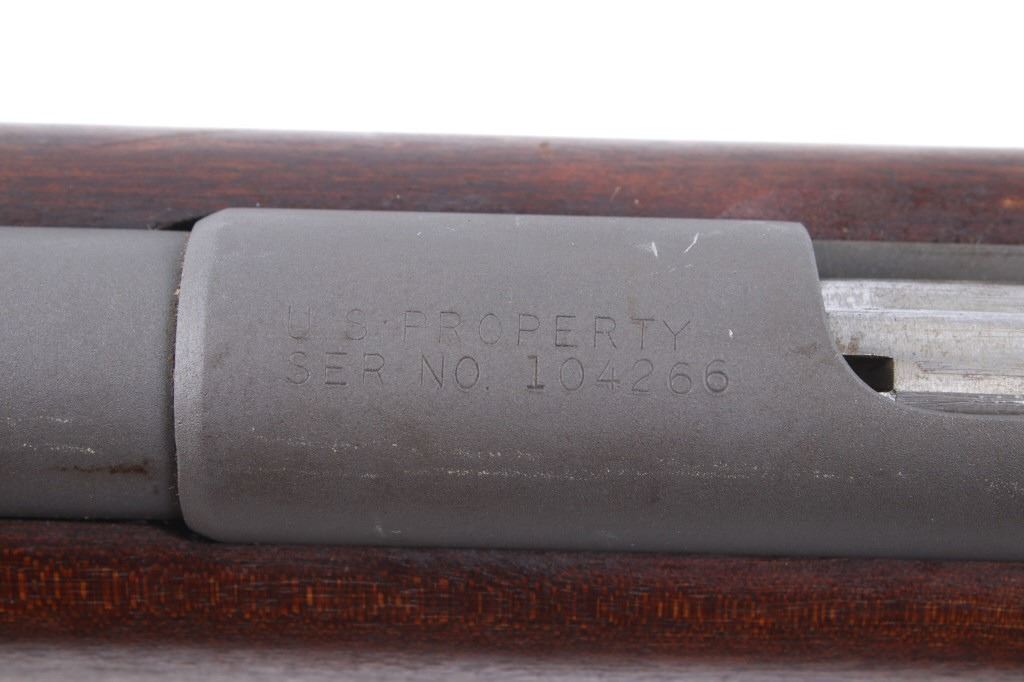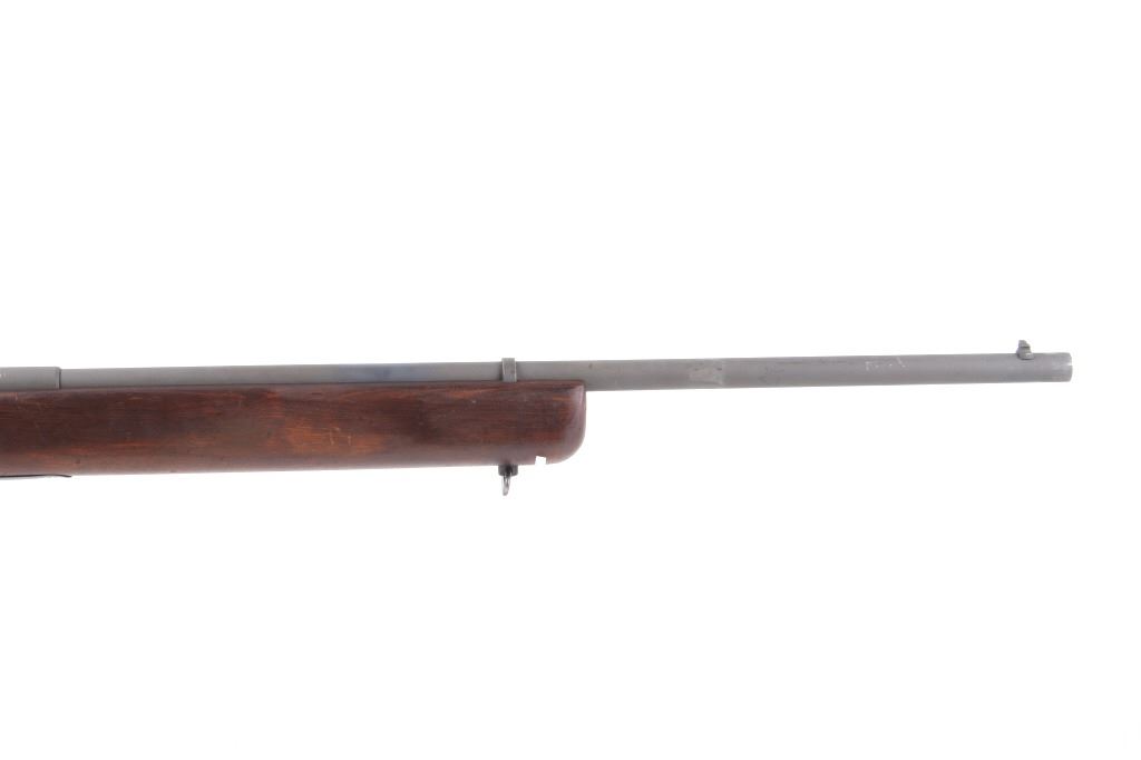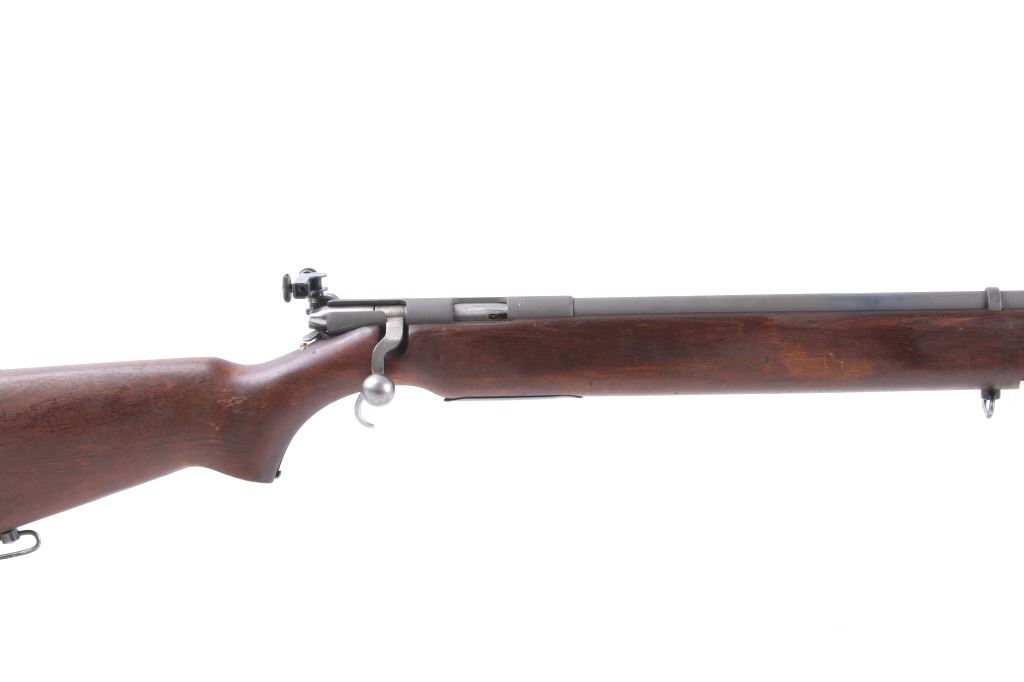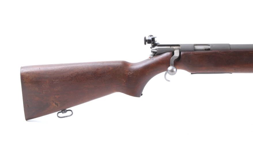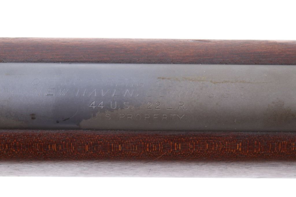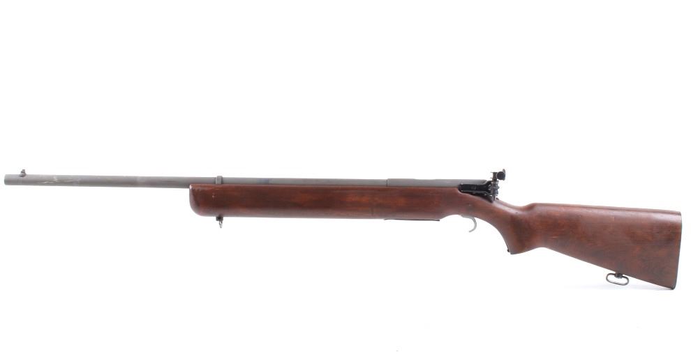 Included in this lot is a Mossberg & Sons 44 U.S. (a) .22 Long Rifle caliber bolt action rifle. This U.S. training rifle features a 24” round barrel chambered in .22 Long Rifle. The firearm is fit with a beech stock, which was a cheaper alternative than the standard walnut Mossberg that was standard on their non U.S. training rifles. This rifle is marked on the barrel, “O.F. Mossberg & Sons, Inc New Haven, Conn. U.S.A. 44 U.S. (a) 22 LR PAT”. The 44 U.S. (a) is fixed with an Apache scope. This training rifle shows good overall condition, with the trigger guard and plastic grip front missing. Serial Number: 104266. This firearm qualifies as a Curio & Relic firearm and requires FFL Transfer or NICS Background Check.