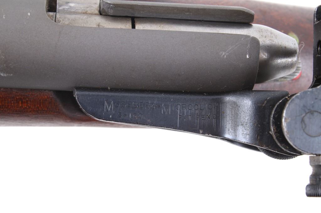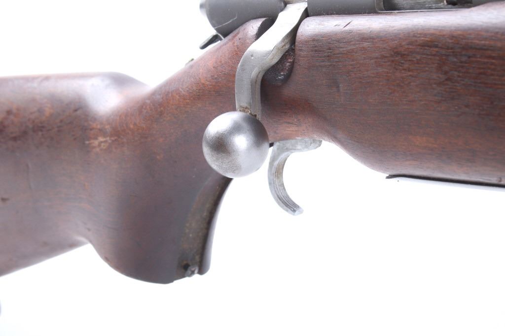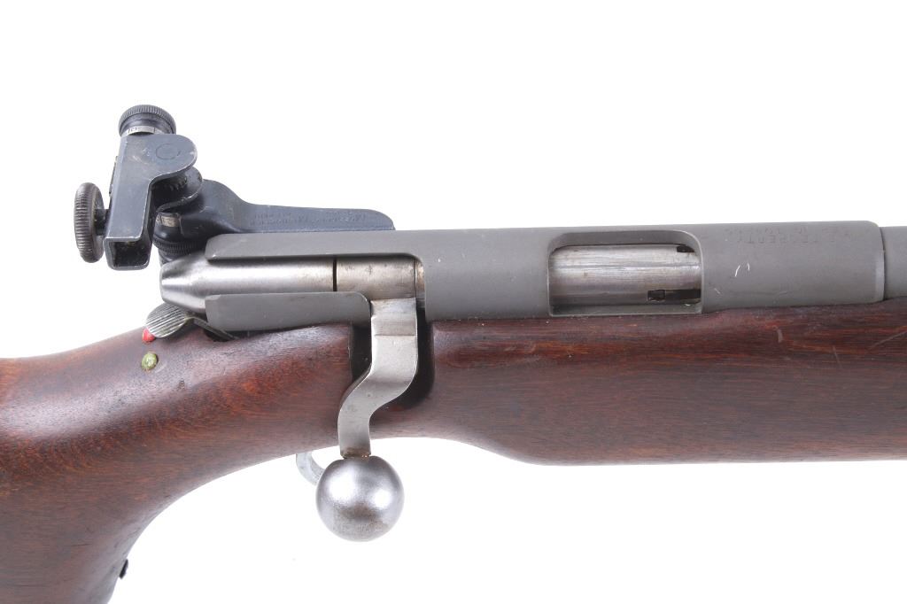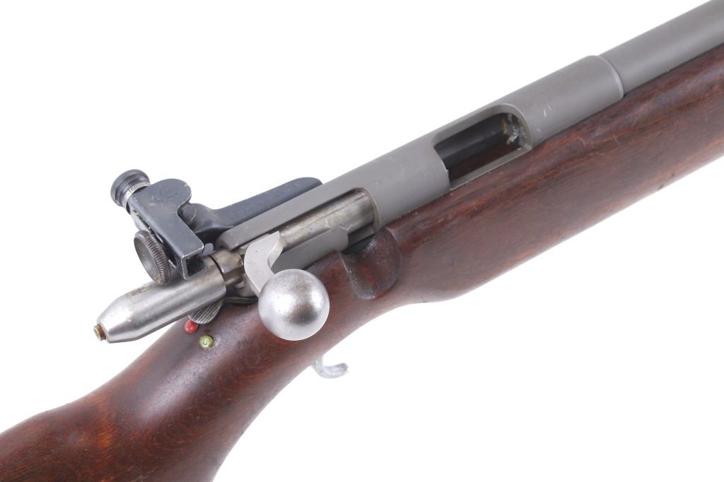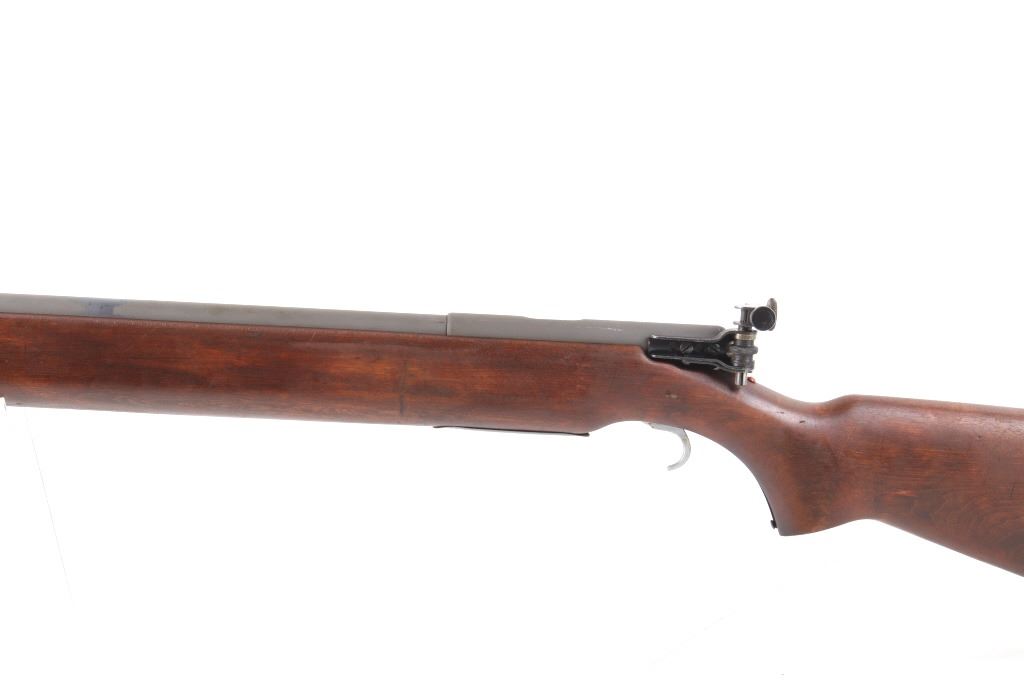 Included in this lot is a Mossberg & Sons 44 U.S. (a) .22 Long Rifle caliber bolt action rifle. This U.S. training rifle features a 24” round barrel chambered in .22 Long Rifle. The firearm is fit with a beech stock, which was a cheaper alternative than the standard walnut Mossberg that was standard on their non U.S. training rifles. This rifle is marked on the barrel, “O.F. Mossberg & Sons, Inc New Haven, Conn. U.S.A. 44 U.S. (a) 22 LR PAT”. The 44 U.S. (a) is fixed with an Apache scope. This training rifle shows good overall condition, with the trigger guard and plastic grip front missing. Serial Number: 104266. This firearm qualifies as a Curio & Relic firearm and requires FFL Transfer or NICS Background Check.