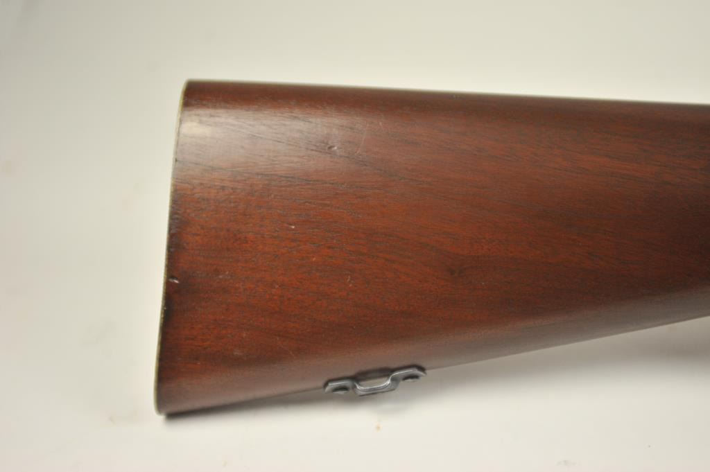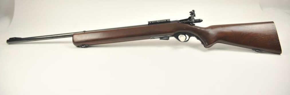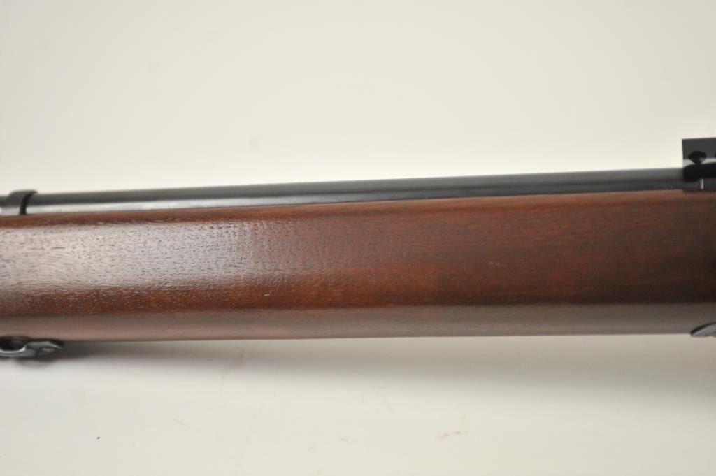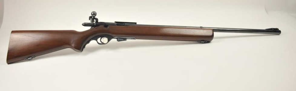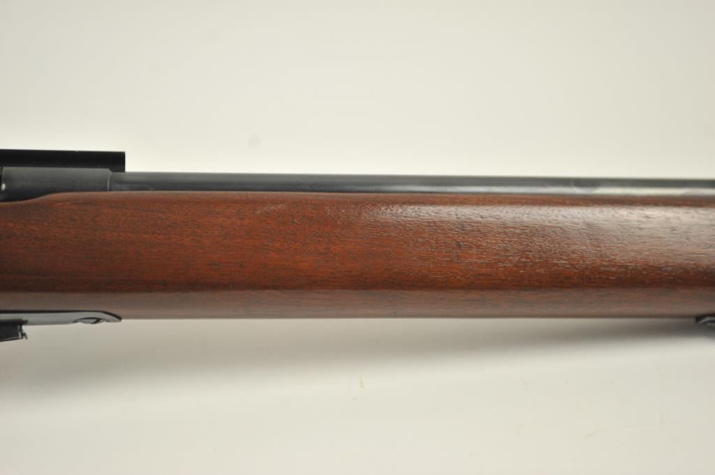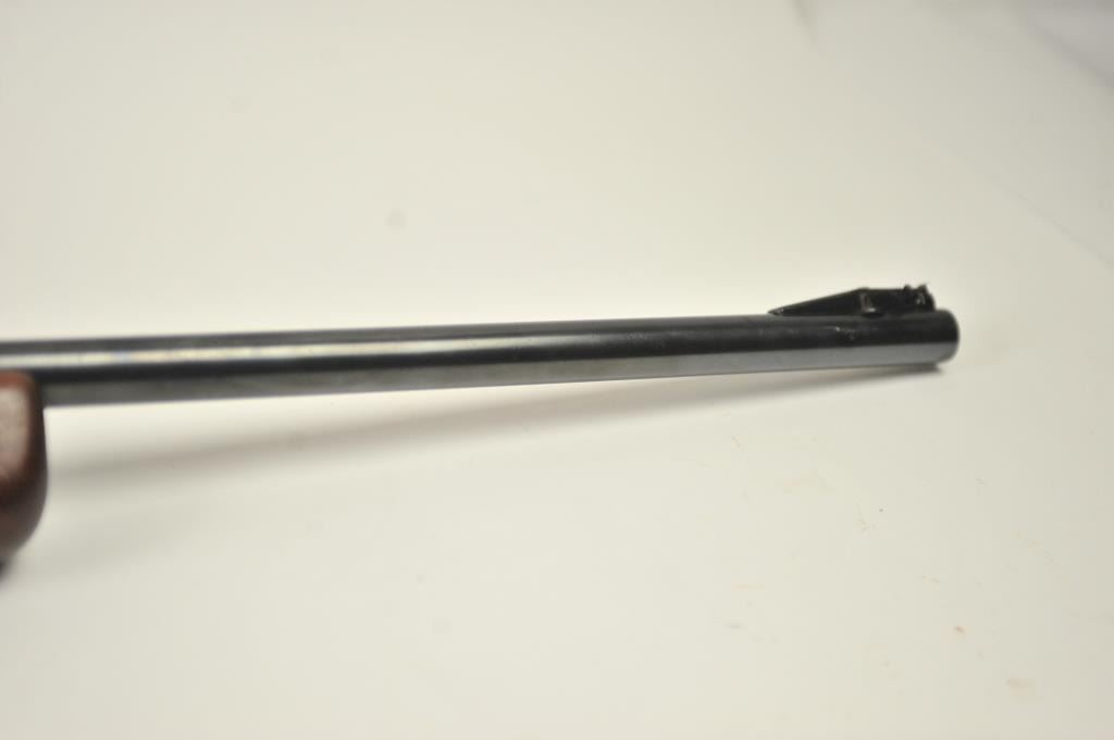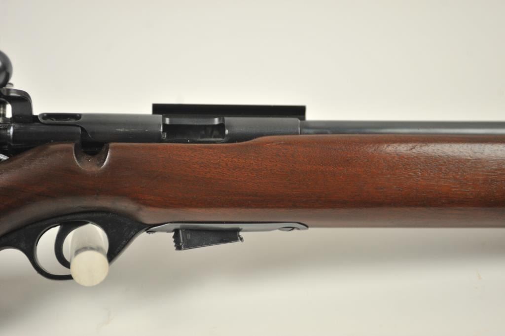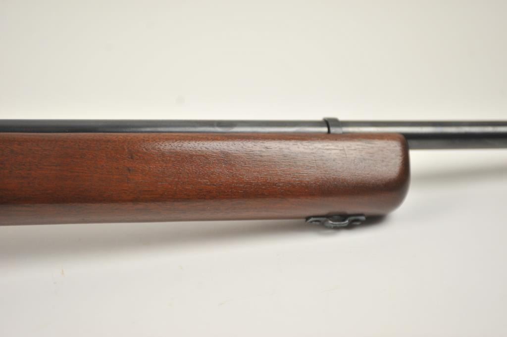 Mossberg Model 44US (b) bolt action target rifle, .22 Long Rifle caliber, Serial #NSNV. The rifle is in fine overall condition with a 26” barrel retaining most of the original blue finish with wear at the muzzle and light scratches. The rifle has a flip up front sight and a Mossberg S-130 aperture sight added. A side mount scope base has been added during the period of use. The smooth wood target stock is in very good conditionwith an oversize froe end and a checkered steel butt plate. The bore is good and the action is crisp. The lot includes one correct magazine. Est.: $175-$350. (C+R).