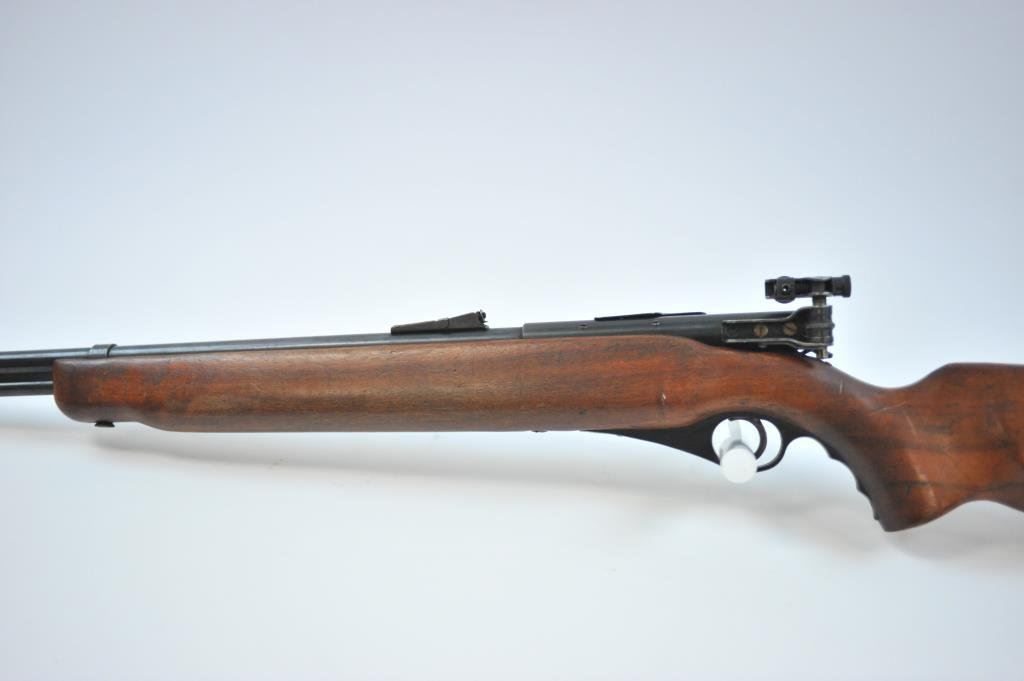 G-S-130 peep rear and oversize homemade front sight. Very good overall condition with 80%-90% thinning blue finish. The wood is also very good with some scratches, dings and mars. Mechanically good with bright bore. (C&R) Est.: $150-$300