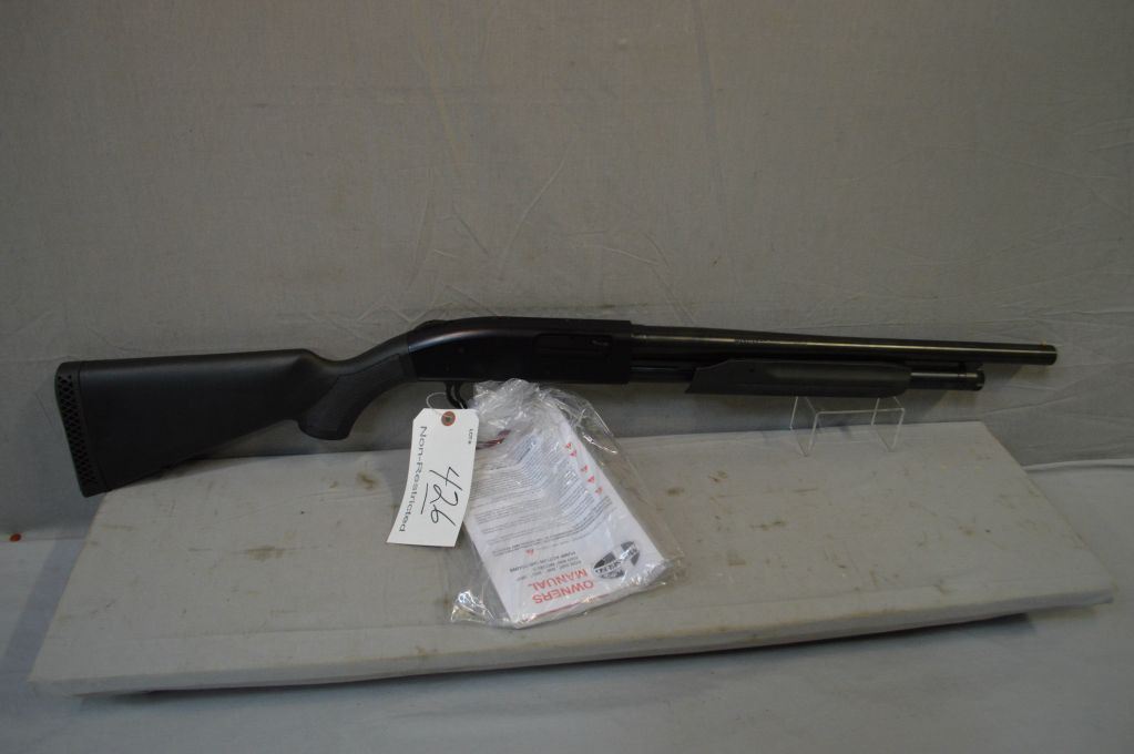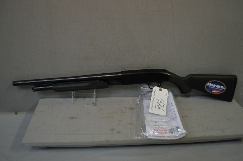 Mossberg Model 500 .12 Ga 3" Pump Action Shotgun w/ 18 1/2" cylinder bore bbl [ appears excellent , with manuals, blue finish, checkered composite pistol grip stock & forend, w/ Mossberg recoil pad & sticker ] Ser # V0213452
