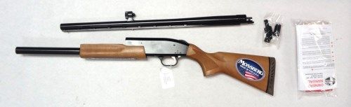 Mossberg Model 500 Bantam Shotgun 12 Gauge. Finish-Blue, Action-Pump, Stock-Hardwood, Checkered, Pistol Grip, Capacity-2.75" 5+1, Chokes- Multi-Choke (Full, Mod, IC), Chamber-3", Safety- Ambidextrous Tang, Sights-Twin Bead, Barrel Length-24" Ported, Vent Rib, Overall Length- 42.625", Weight-7.25 lbs, Features- Sling Swivel Studs, 13" Length of Pull, Butt Plate- Vented Recoil Pad, Receiver- Blued, Drilled & Tapped. Comes with a lifetime Guarantee. Est 400.00-450.00
