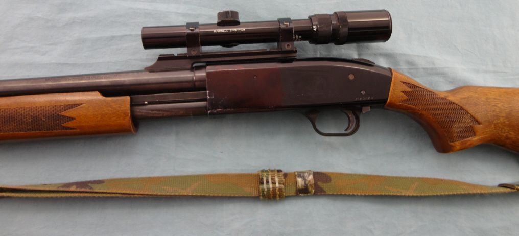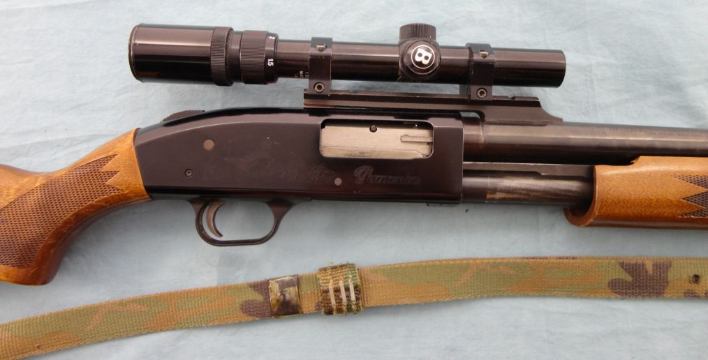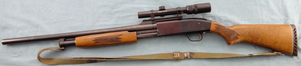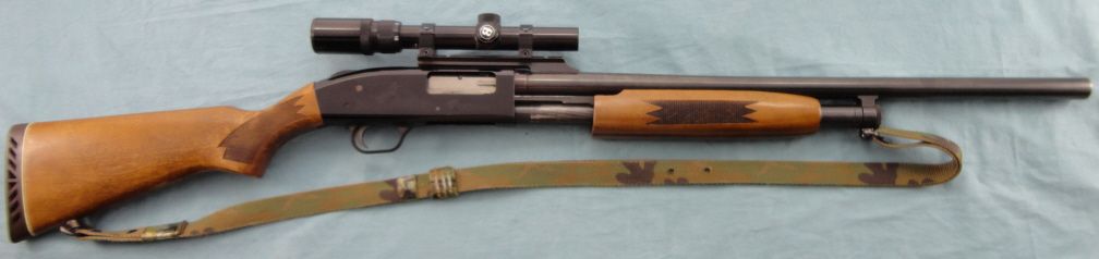 #J902804; 12ga. 24" rifled bbl. Blued finish w/some wear from use. Bushnell scope & sling. A good functional rifled slug gun.