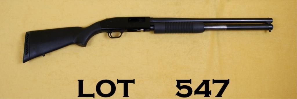 Mossberg Model 500A pump action shotgun, 12 gauge, riot size 20” barrel, black finish, composite stocks, #L252544. This gun is in overall very good to excellent condition showing approx. 98% original finish, excellent bore, action, markings and stocks, sling swivel eyelets, hard rubber butt pad. Est.: $200-$300.