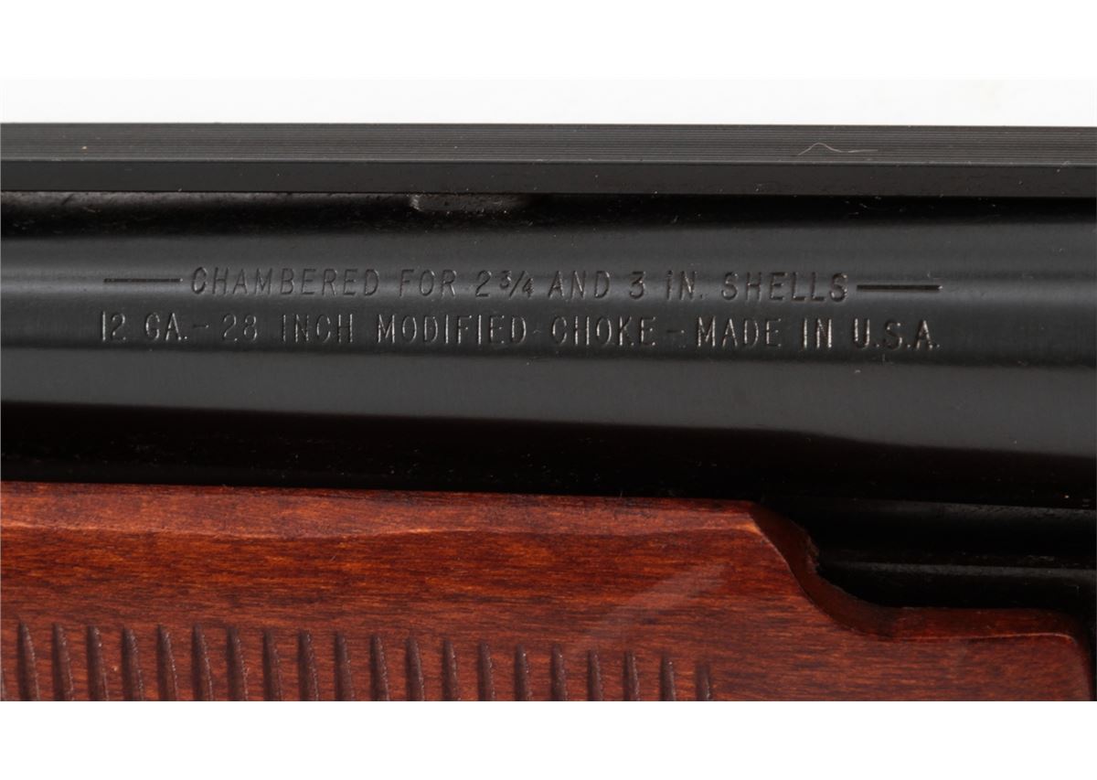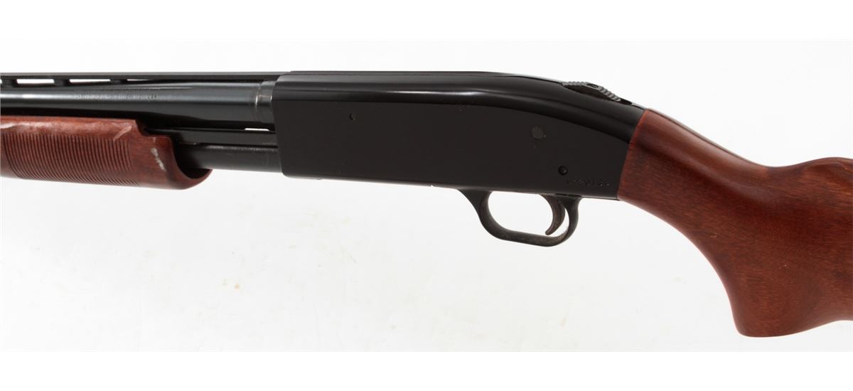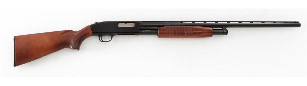Mossberg Model 500AT Pump Action Shotgun, #G420138, 12 ga., 28'' vent rib barrel choked Mod. With 3'' chambers, blue finish, birch stock. Condition is fine showing light field use with some wear in actioning areas. Good stock, crisp action, bright bore. Est.: $200-$400. (Modern)
