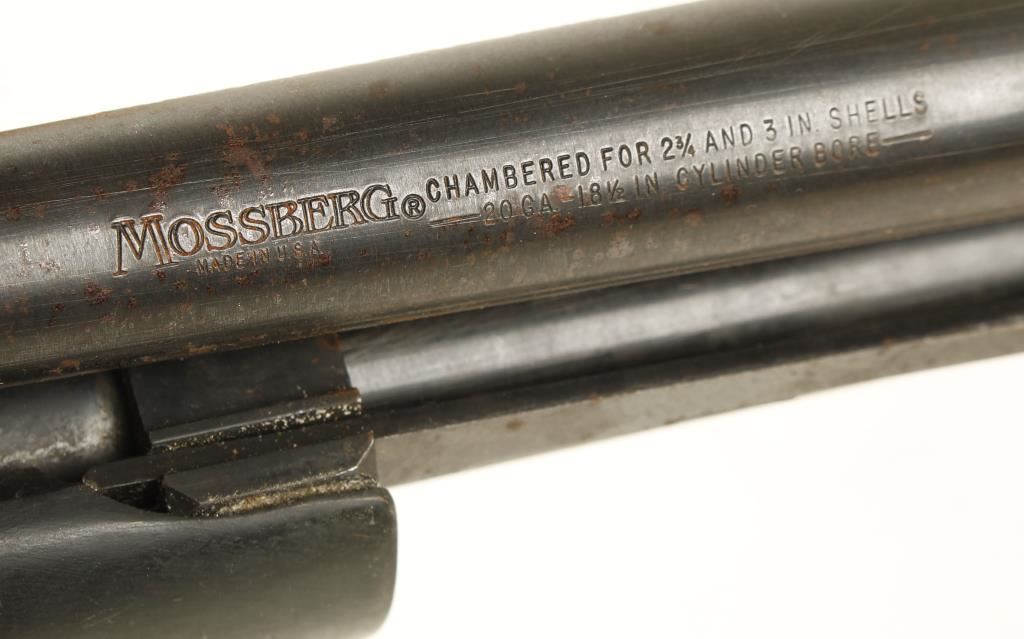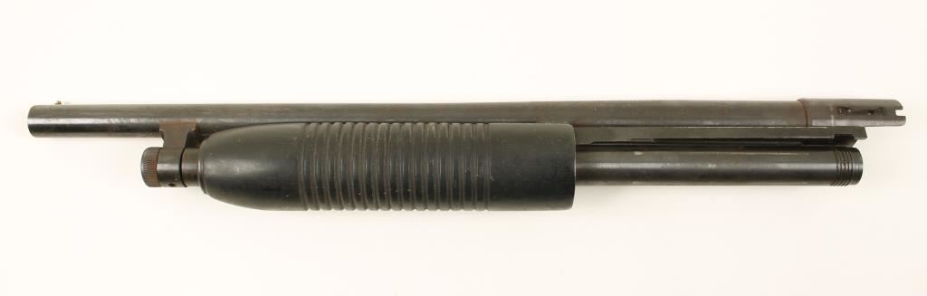 Barrel is 20GA 18-1/2" long, cylinder bore with a good bore, spots of surface rust and scratches. Mag tube and bolt rods are in the same condition. There is no follower or mag spring. Pump handle is black polymer.
