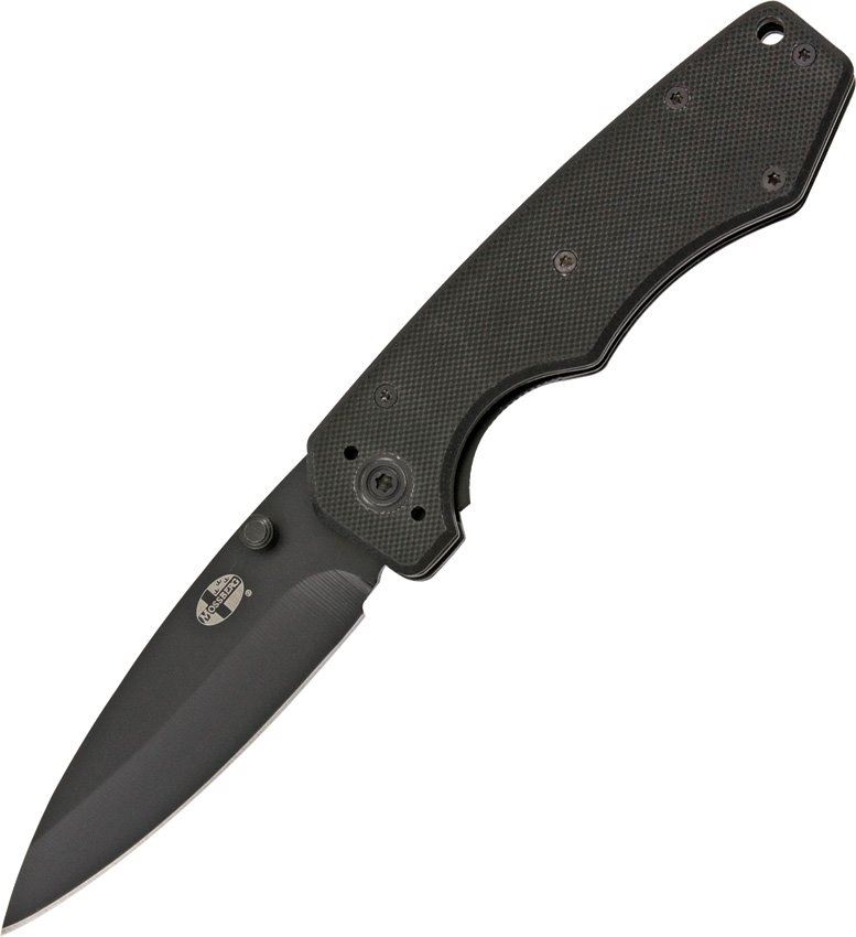Tactical Linerlock - 4 5/8" closed. 3 1/4" black finish 440 stainless blade with dual thumb studs. Black G-10 handles. Lanyard hole. Reversible black finish stainless pocket clip.