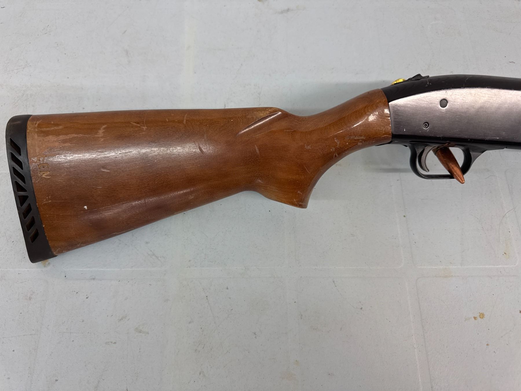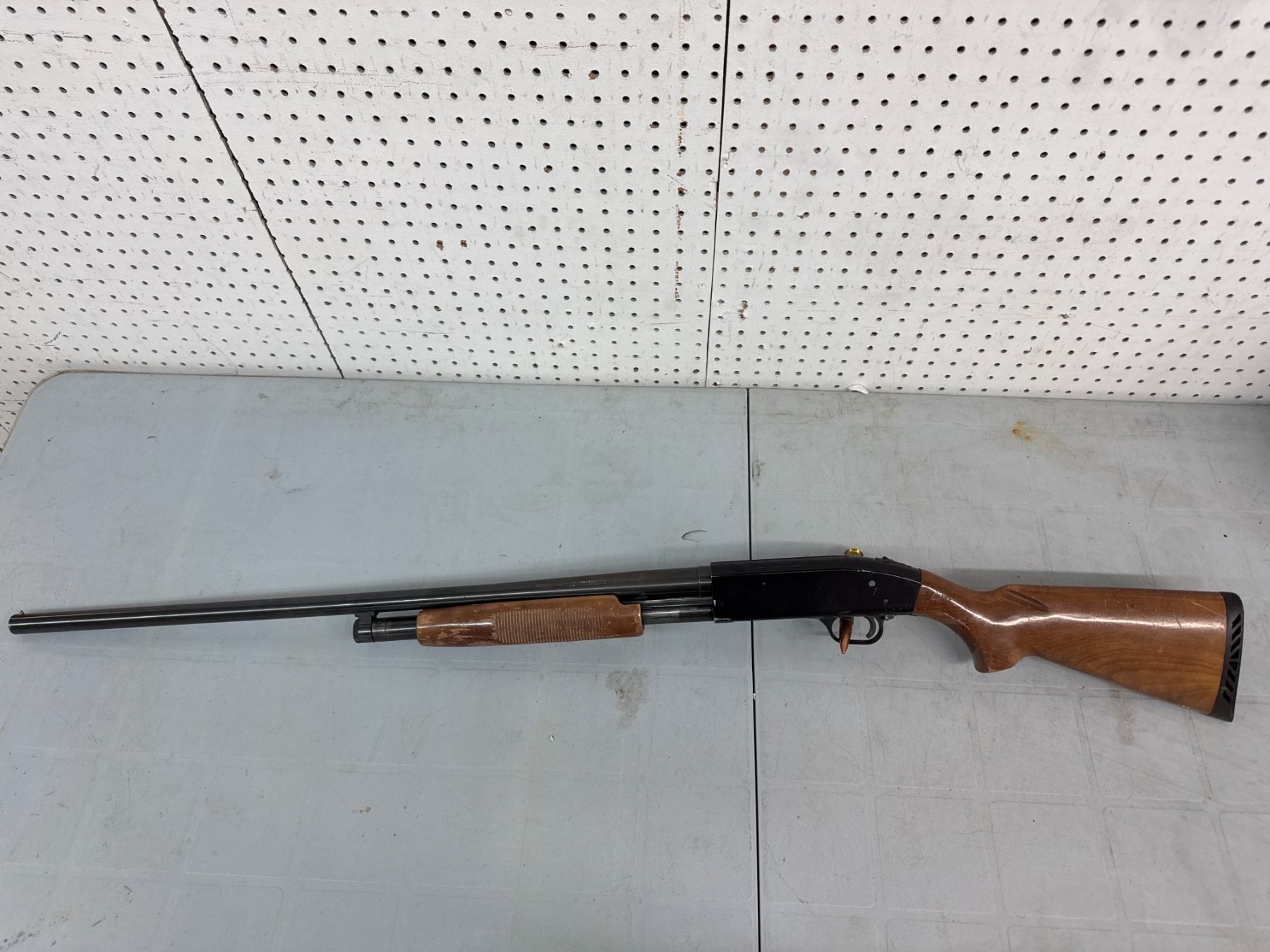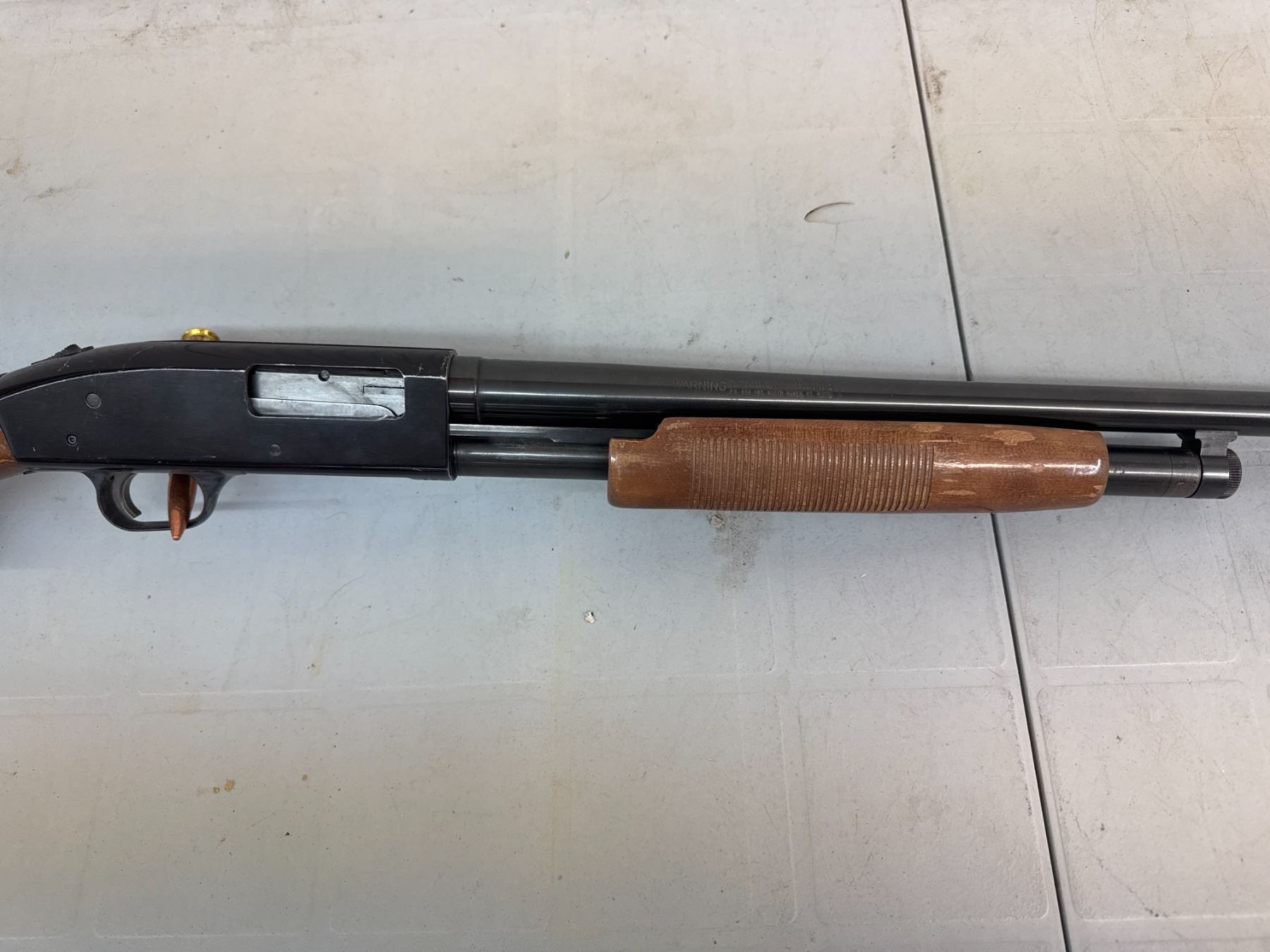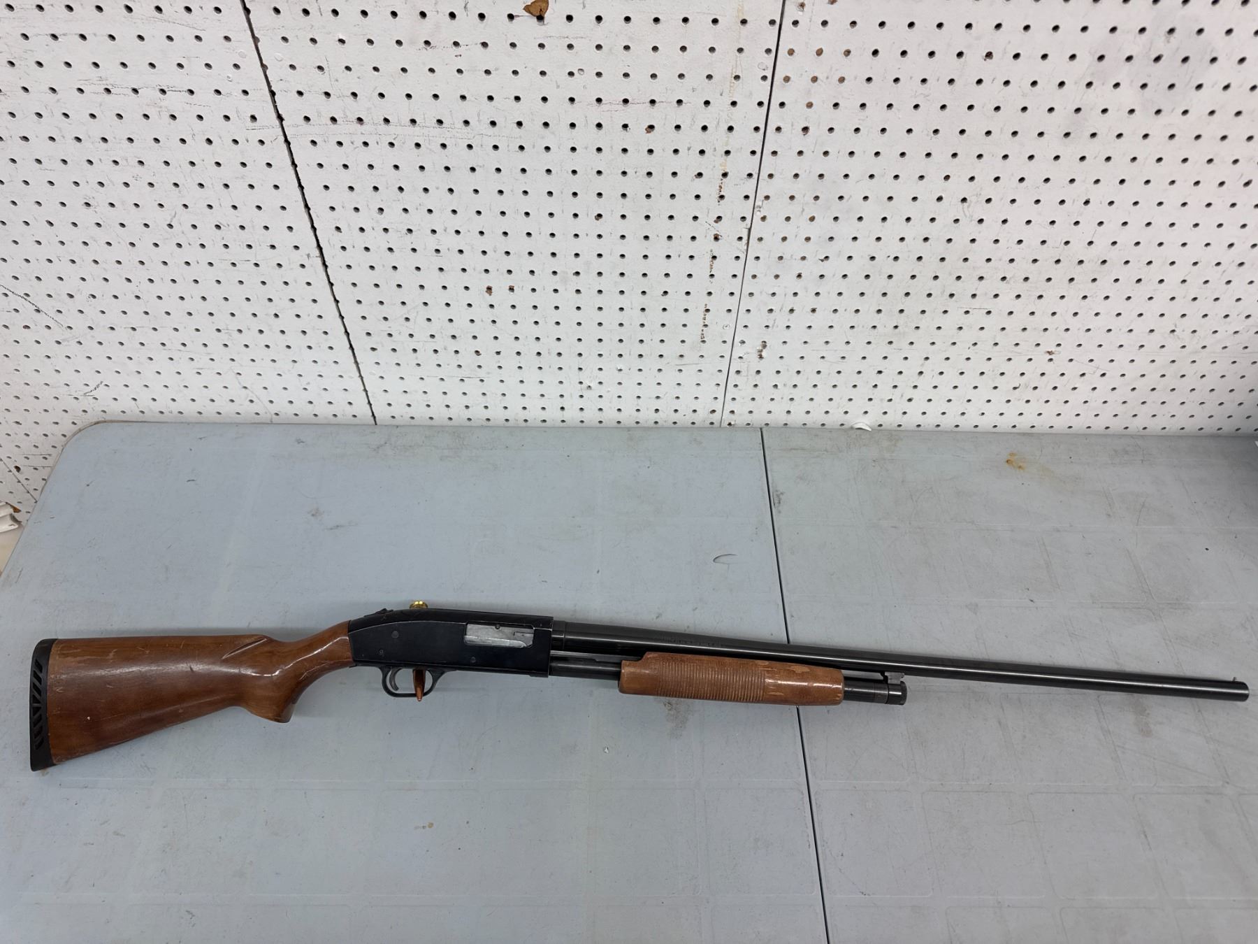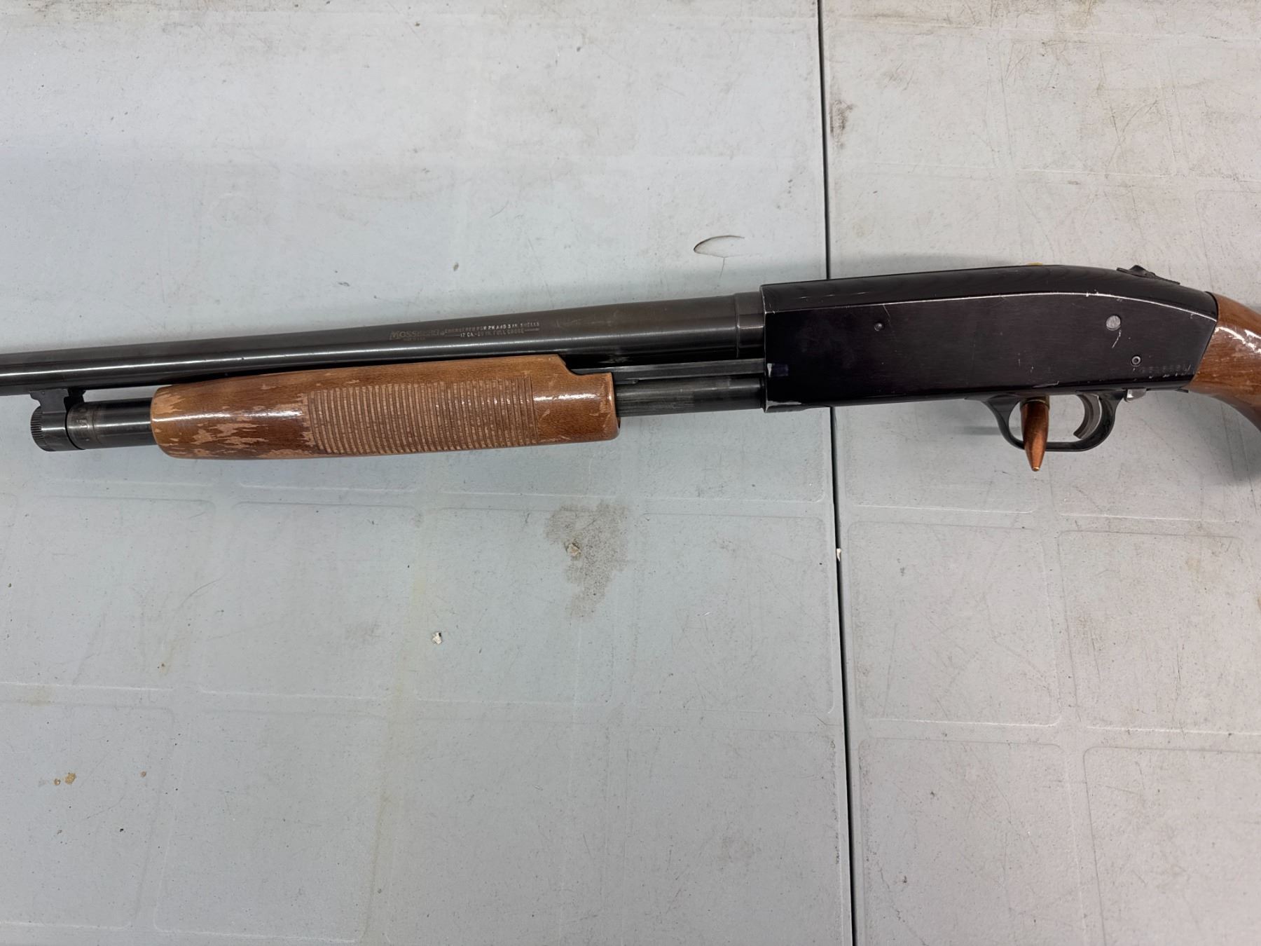 pump action. retains approx 65% of its original blue, mechanics function well, Bore on the 30" barrel is shiny, Stocks have some scuffs and varnish loss. No cracks, chips or repairs.