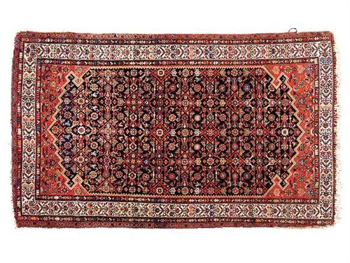 206 x 125 cm Wool, ghiordes knotting Iran, early 20th century. Worn.