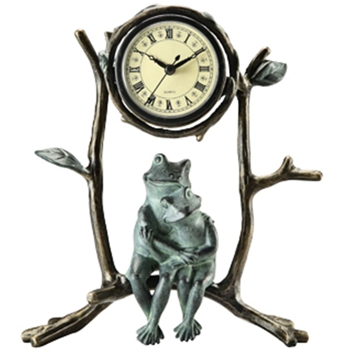 Mother & Baby Frog Clock - 10"H 9"W 3.5"D - Aluminum