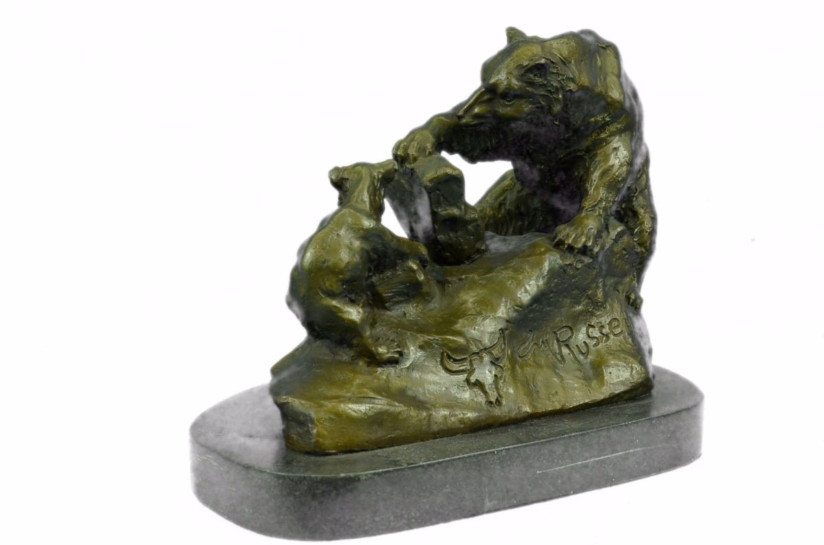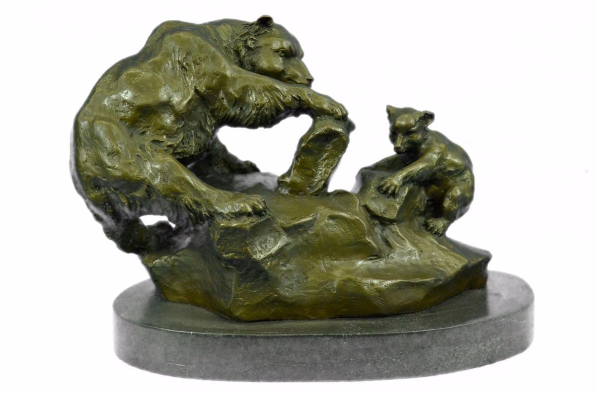 The Mother Bear Has Taken Her Young Cub The Steep Slopes Of A Mountainside To Teach It To Forage For A Meal. With Her Powerful Foreleg, She Pries Back A Heavy Stone, Revealing Edible Moths And Grubs To Her Offspring. The Young One Looks On Learning His Life Lesson While Clinging To A Rock That Does Not Budge. The Bronze Sculpture Was Captured Using The Age-Old Method Of Lost-Wax Casting And Stained With A Brown Patina Finish For Preservation. It Is Mounted Upon A Black Marble Base With The Artist Brayer's Signature. Antoine-Louis Barye (September 24, 1796 – June 25, 1875) Was A French Sculptor Most Famous For His Work As An Animalize, A Sculptor Of Animals. Born In Paris, Barye Began His Career As A Goldsmith, Like Many Sculptors Of The Romantic Period. After Studying Under Sculptor Francois-Joseph Bosio And Painter Baron Antoine-Jean Gros He Was In 1818 Admitted To The École Des Beaux Arts. But It Was Not Until 1823, While Working For Fauconnier, The Goldsmith, That He Discovered His True Predilection From Watching The Animals In The Jardin Des Plants, Making Vigorous Studies Of Them In Pencil Drawings Comparable To Those Of Delacroix, Then Modeling Them In Sculpture On A Large Or Small Scale. Bronze Dimensions With Marble Base: Height 10 X Width 12 inches. Weight: 13 Lbs.