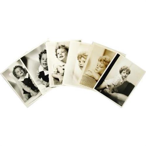 <B>"Mother Carey's Chickens" Archive.</B></I> Six original 8" x 10" still portraits of Donnie Dunagan from his Hollywood debut in RKO's <I>Mother Carey's Chickens</B></I> (1938). Only three years old when he arrived in Hollywood, Donnie shows himself a real trouper in this gallery of poses -- winsome, mischievous, pensive. Five of the six stills have the RKO Radio Pictures, Inc. studio stamp on the reverse, and two have the stamp of his agent, Rodney Pantages, Inc.on the reverse as well. Some minor border wear, and a bit of surface creasing on one of the shots; overall Very Fine condition. <I>From the Donnie Dunagan Archive</B></I>.<BR><BR><b>Shipping:</b> Flat Material, Small (<a target="_blank" href="http://www.heritageauctions.com/common/shipping.php">view shipping information</a>)