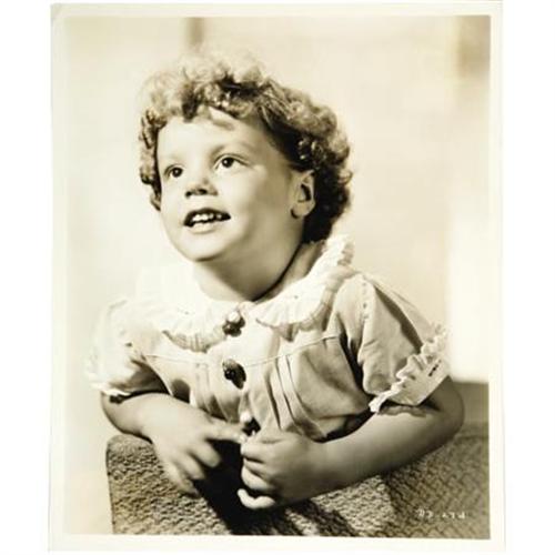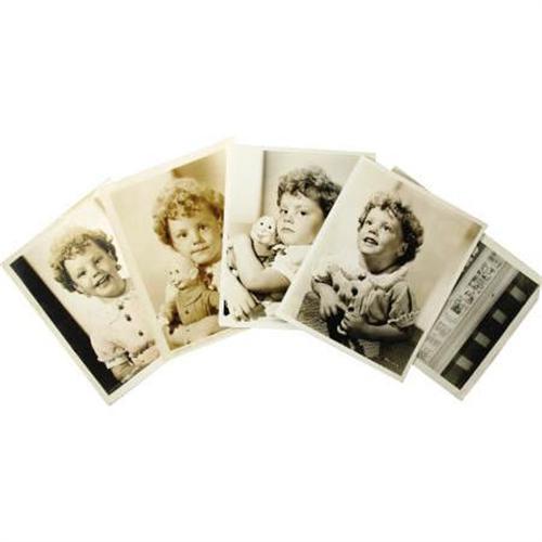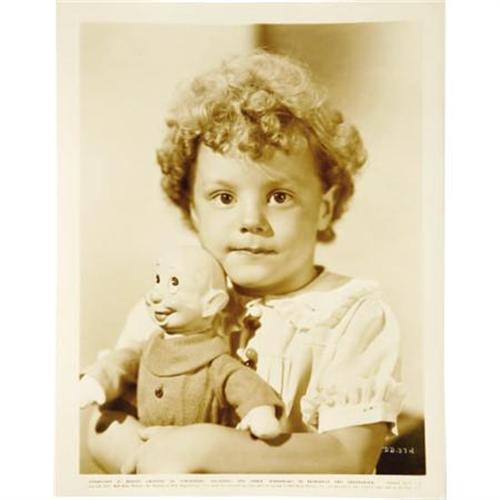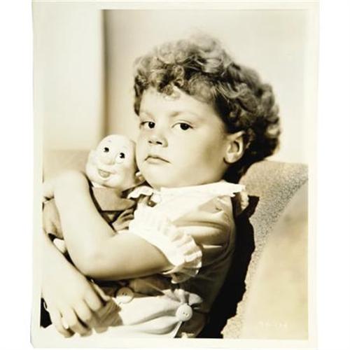 <B>"Mother Carey's Chickens" Photo Archive.</B></I> Five original 8" x 10" stills from RKO's <I>Mother Carey's Chickens</B></I> (1938), directed by Rowland V. Lee and starring Ruby Keeler and Anne Shirley. Child star discovery Donnie Dunagan made his Hollywood debut in this film (at the age of three) and these stills come from Dunagan's personal scrapbook.They include two shots of Donnie posing with a "Dopey" doll (from the then-recently released <I>Snow White and the Seven Dwarfs</B></I>); two of him smiling; and one shot of a theatre display for the film, with the teaser "Featuring Donnie Dunagan New Child Star." One of the smiling poses has some staining on the borders and lower picture area;the theatre display picture has a chip from the upper right corner and some surface ceases; there is some residue on the reverse of four of the shots from having been pasted in the scrapbook; and two of the shots have the RKO Radio blue stamp on the back, with the credit "Photo By Fred Hendrickson." Overall Very Fine condition. The shots of Donnie with the Dopey doll are in a way prophetic, as Dunagan later signed a contract with Walt Disney to provide the fawn's voice in <I>Bambi.</B></I> <I>From the Donnie Dunagan Archive</B></I>.<BR><BR><b>Shipping:</b> Flat Material, Small (<a target="_blank" href="http://www.heritageauctions.com/common/shipping.php">view shipping information</a>)