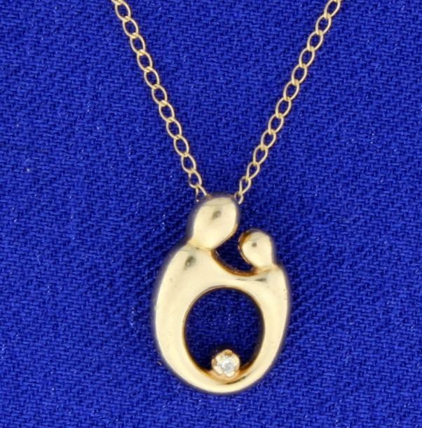 The chain is 18" long. The length of mother and child pendant over 1/2 inch 2.0g