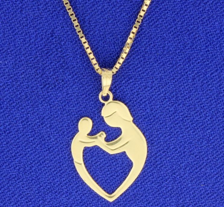 The necklace is 14K yellow gold, the pendant is 1 inch long and the chain is 18 1/4 inch long. 2.8g