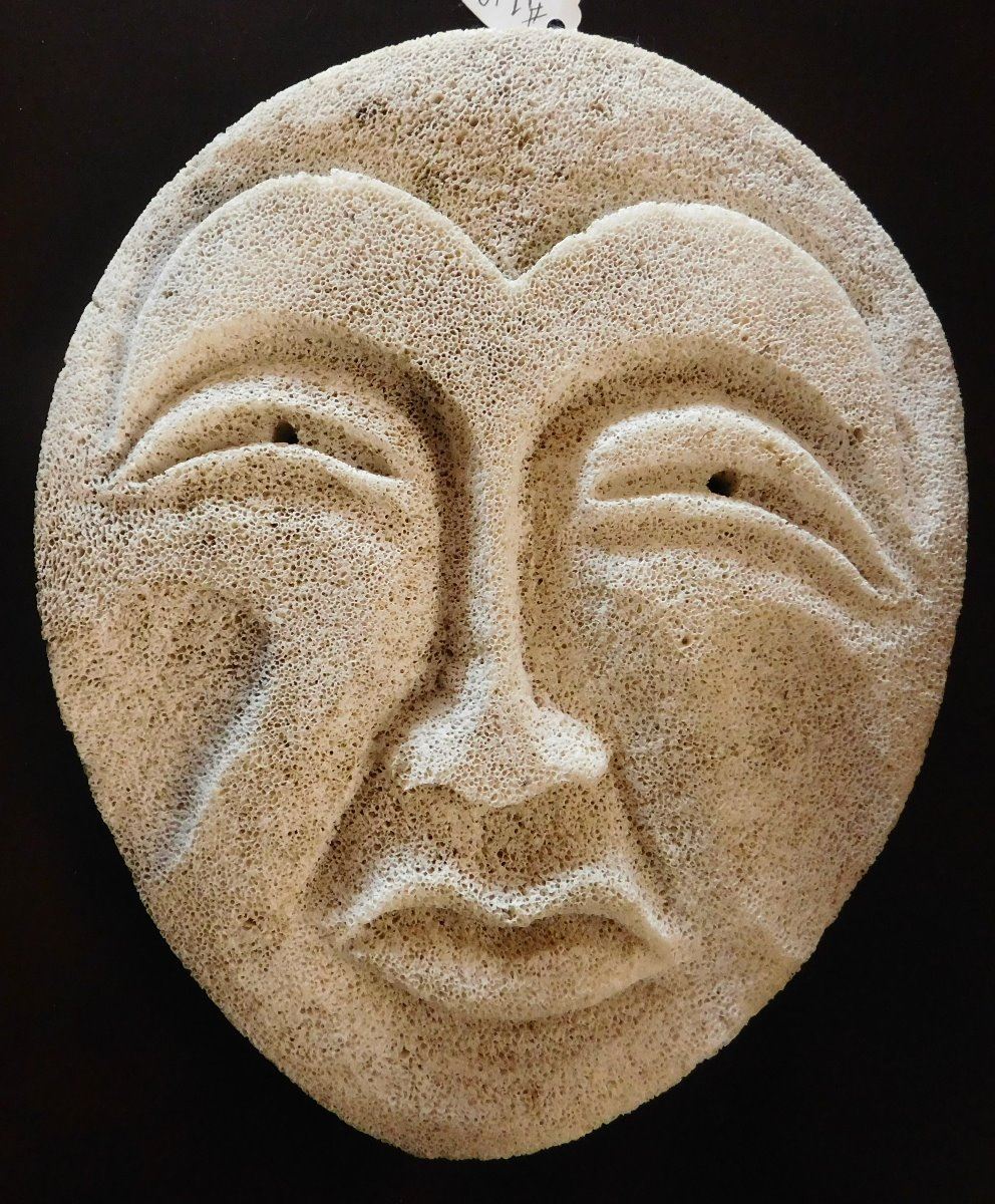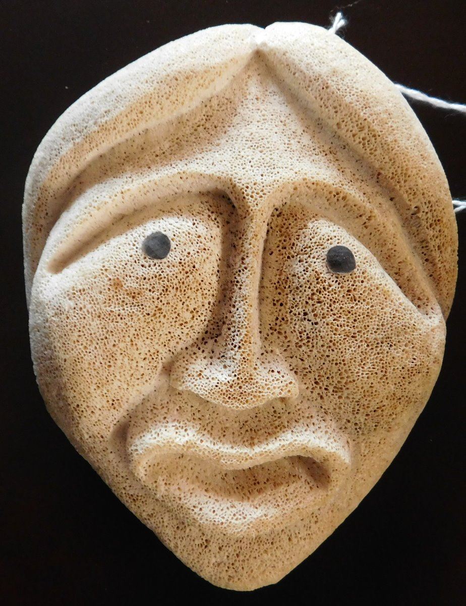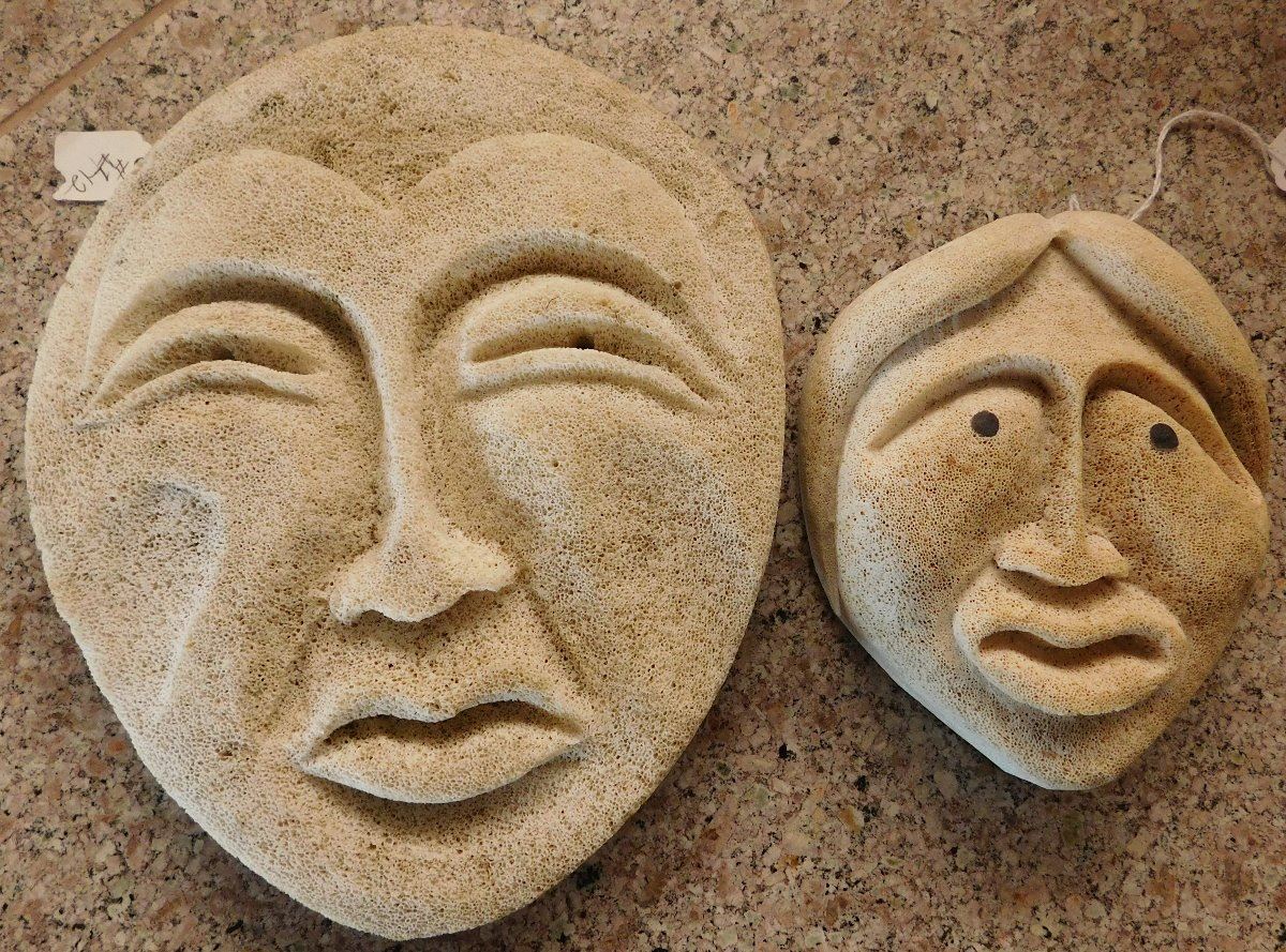 Mother & Daughter Bone Masks, circa 1980s. Made of bone and measuring 5.5" to 8.75" tall, the items are Eskimo, from Alaska. Condition: Very good, see images. Shipping: $22.50 w/insurance and signature.