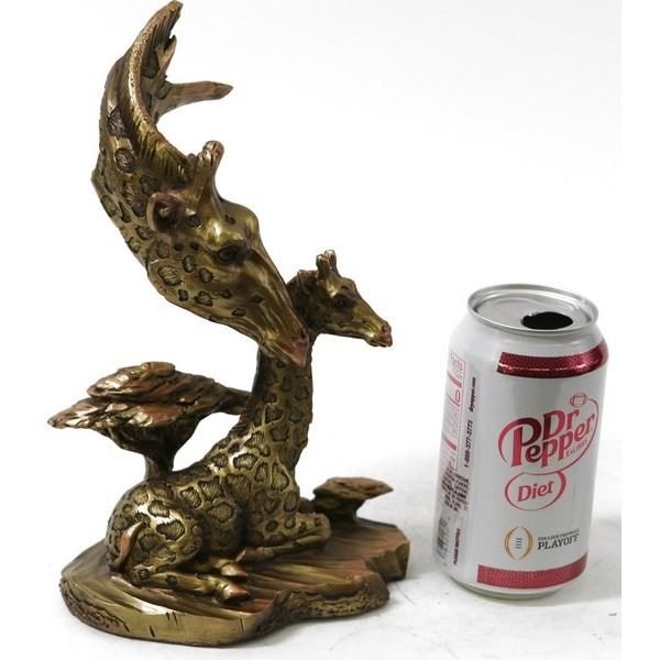 Crafted of Cold Cast Resin Metallic Bronze Finish Hand Painted Accents Enhance The Amazing Detail Felted Bottom Prevents Furniture From Being Scratched Each piece is uniquely hand-painted with incredible detail by European Design Studio. Polyresin is a resin compound generally used for statues, figurines, bobbleheads, and decorative furniture. It is a sturdy material that can be intricately molded, allowing a great level of detail with consistent texture. One form of polyresin often used is Alabastrite. It is a stone-based material, easy to sculpt, takes paint well, and has a similar appearance to porcelain and pottery. Measures 9 Inches Tall, 7 Inches Long, 4 Inches Wide.