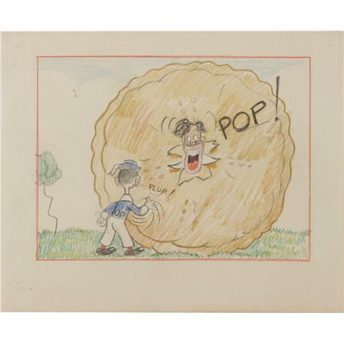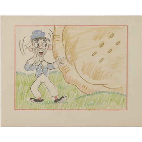 <B>"Mother Goose Goes Hollywood" Animation Production Drawing Original Art (Walt Disney, 1938).</B></I> Two storyboards done in graphite and colored pencil. The first is of Eddie Cantor about to stick his finger in the pie, and the second has Eddie from behind, putting his finger in the pie as Cab Calloway pops out of the center. Both pieces of paper measure 9" x 7", and are in Very Good condition. <BR><BR><b>Shipping:</b> Flat Material, Small (<a target="_blank" href="http://www.heritageauctions.com/common/shipping.php">view shipping information</a>)