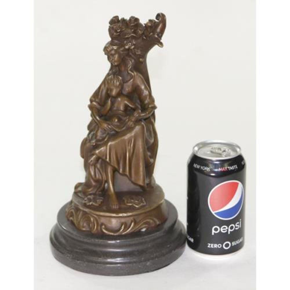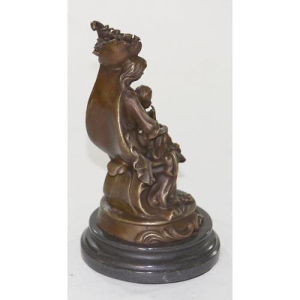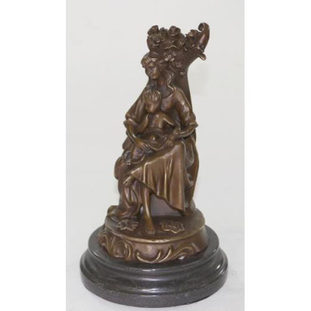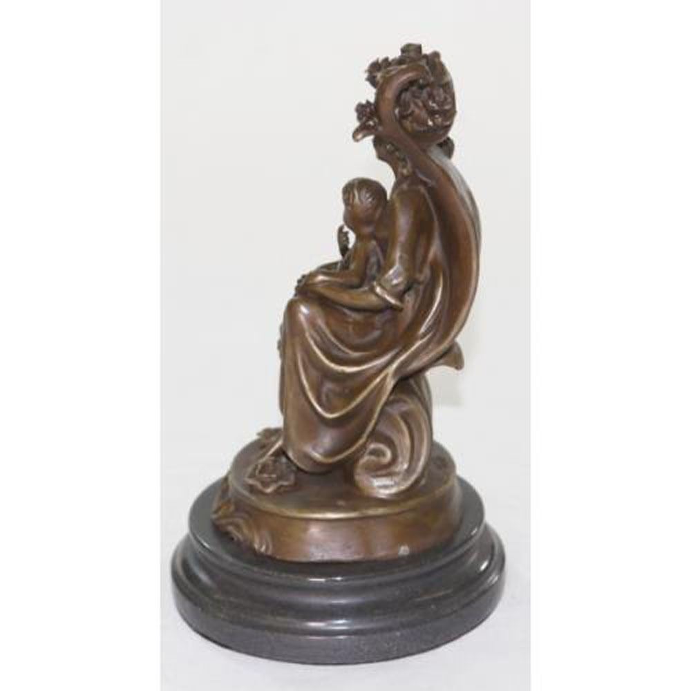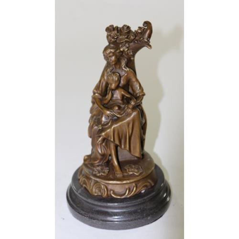Compassion, love, nurturing. Some of our greatest and most cherished tenets are captured in this sleek statue. This statue is simple lines and minimalist shapes depict a mother holding her infant child. Made of genuine bronze , this statue exudes warmth, strength and feminine character. This sculpture was casted using the Lost Wax Method and has a brown patina and sits on a marble base. Bronze Dimensions with Marble Base: Height 11 X Width 6 Inches. Weight: 10 LBS.