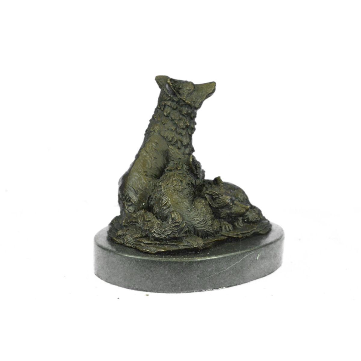 This sculpture is 100% hot cast bronze metal and was handmade by artists using the ancient lost wax casting process. This sculpture contains no resins or cheap fillers. This sculpture is mounted on a real marble base. Bronze Dimensions with Marble Base: Height 4.5" x Width 5" Marble Dimensions: 5" Diameter Height without Base: 4" Approximate Weight : 3 LBS Signature: Barye Original or Reproduction: Reproduction