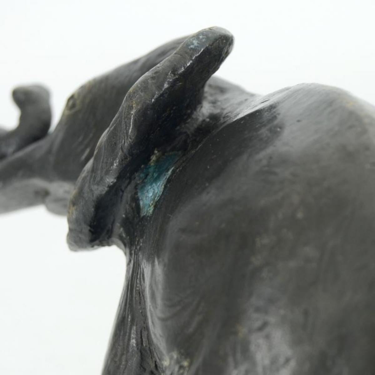 "Mother and Child" is a limited edition bronze two piece sculpture set, numbered and signed by Donna Mason-Adams. Includes Certificate of Authenticity. Large elephant measures approx. 13" (width) x 5" (depth) x 11" (height), 16 lbs. (weight). Small elephant measures approx. 9" (width) x 3" (depth) x 5" (height), 3 lbs. There may be some small areas with a slight white coloring due to oxidation, which commonly occurs with bronze pieces. This is normal and superficial. The inner layers of the object are protected from deterioration.