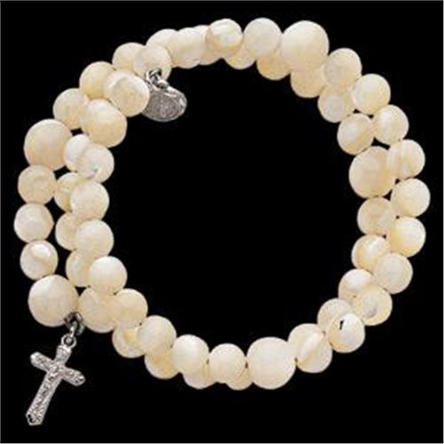 This White MOTHER OF PEARL ROSARY fetaures a STERLING SILVER Cross as well as a STERLING SILVER Miraculous Medal.