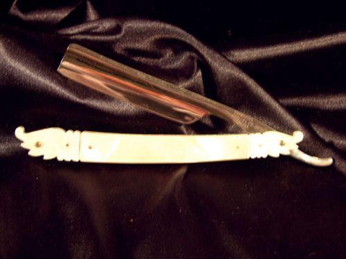 Mother of Pearl Straight Razor, Brunswick Cutlery Co. Prussia. Crack to back side otherwise excellent condition. 6 inches long.