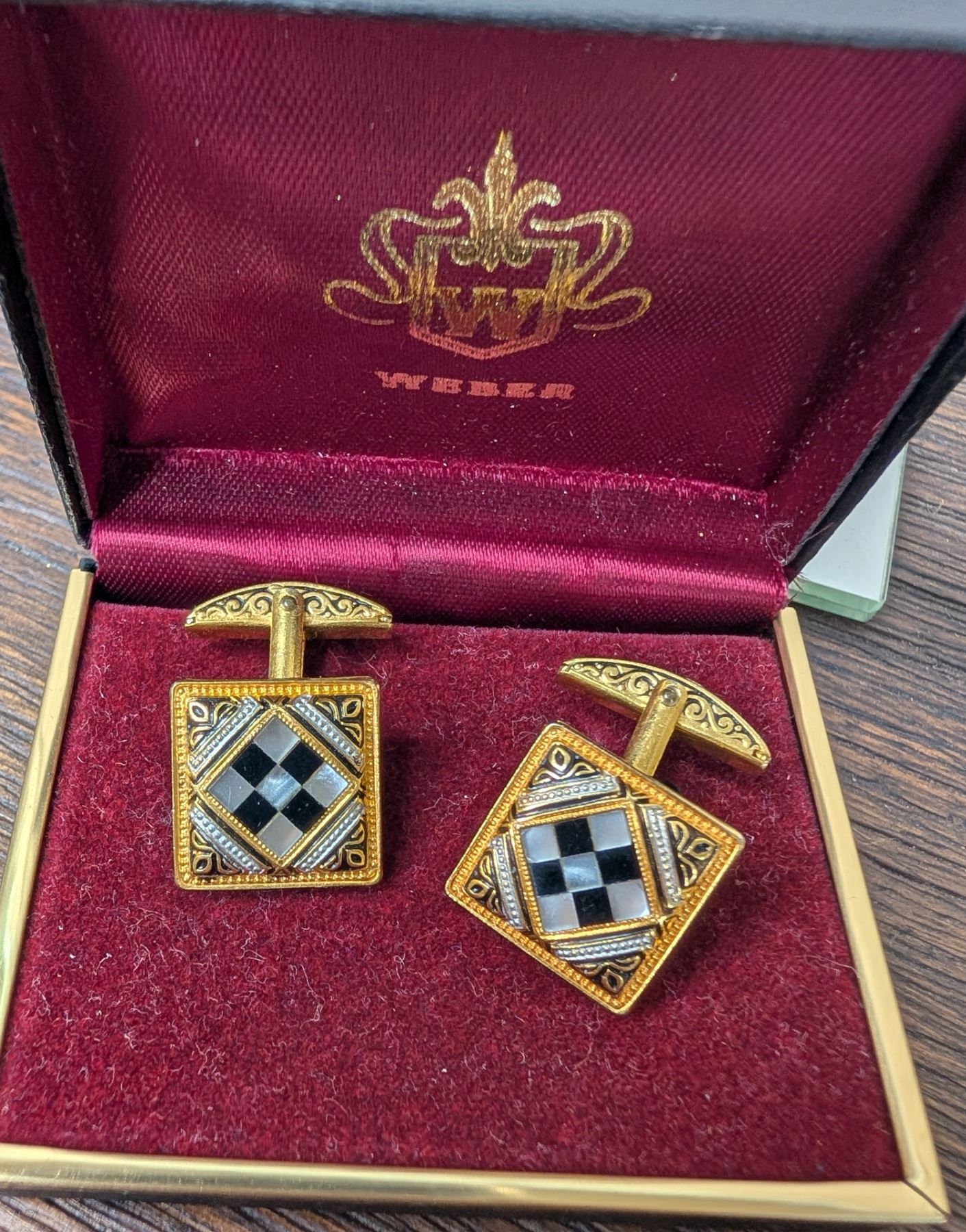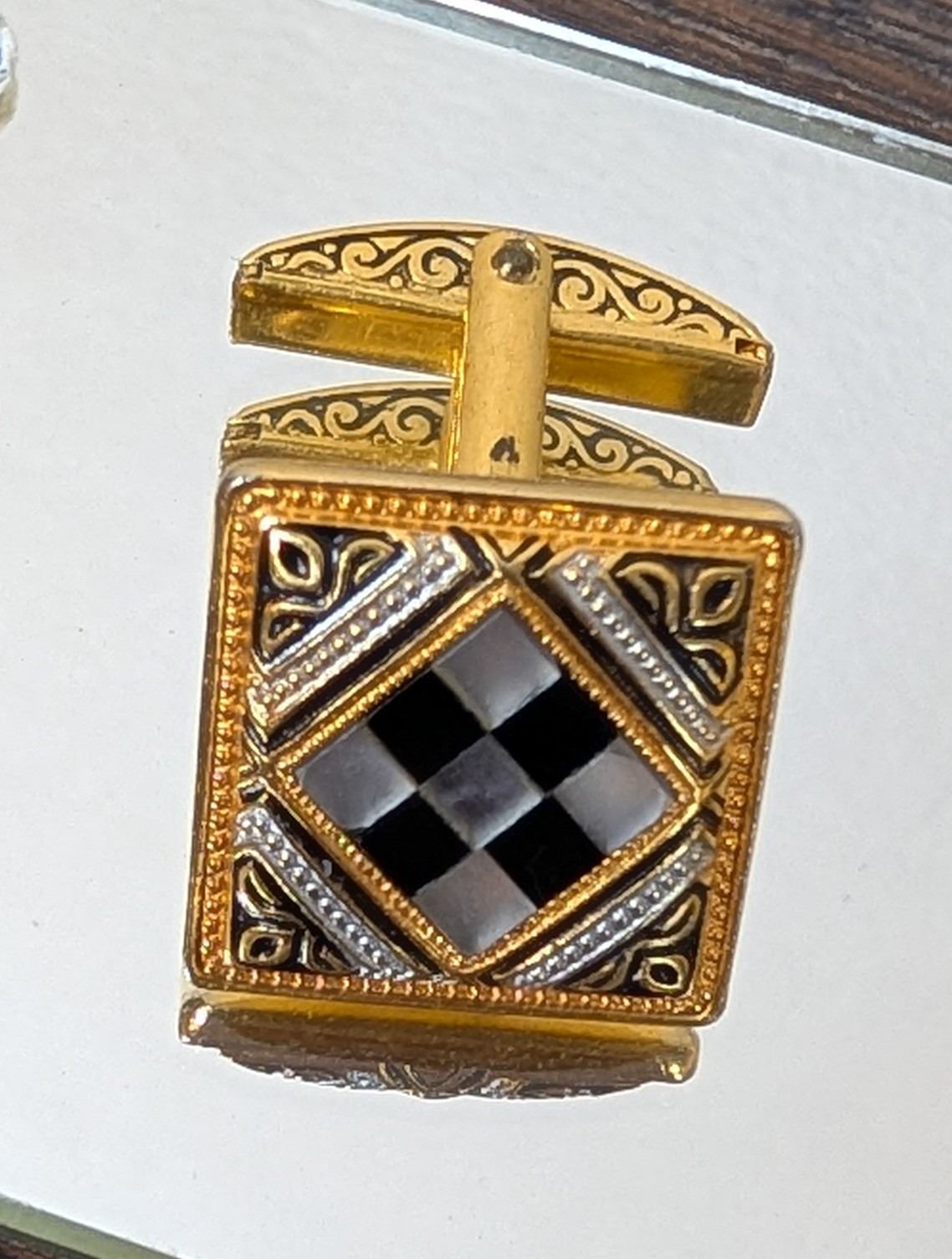 MOP/onyx ornate cufflinks gold/silver tone