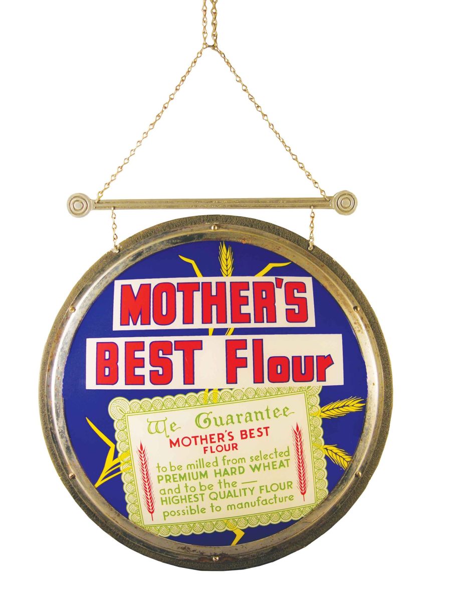 Mother's Best Flour, Glass Light up Sign, convex glass. Excellent original working condition. 17 inch diameter.