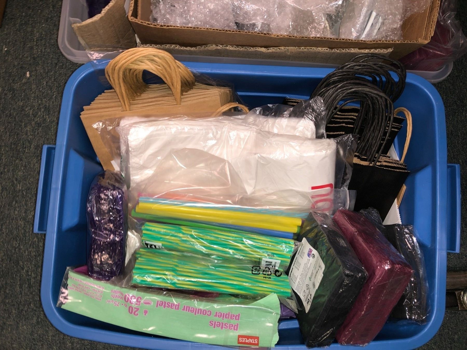 "Motherland: Fort Salem" - 10 boxes of Paper products & ceramic crockery - includes paper plates/paper cups/paper bags/napkins/straws/ceramic plates/drinking glasses etc.