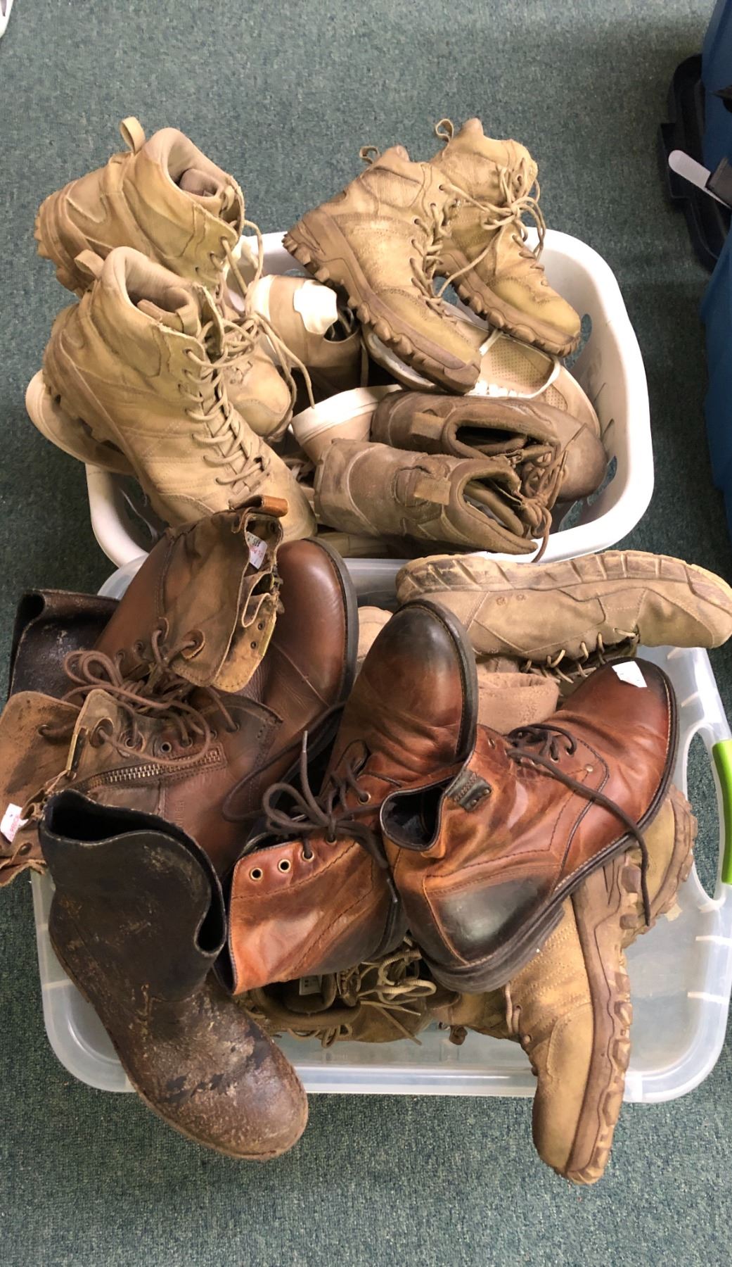 "Motherland: Fort Salem" - Approx. 20 pairs of assorted brown boots & Zara sneakers