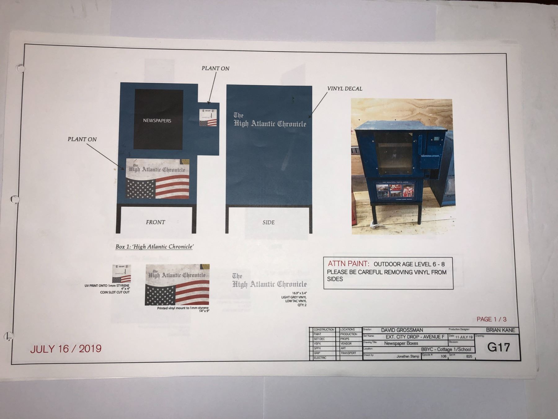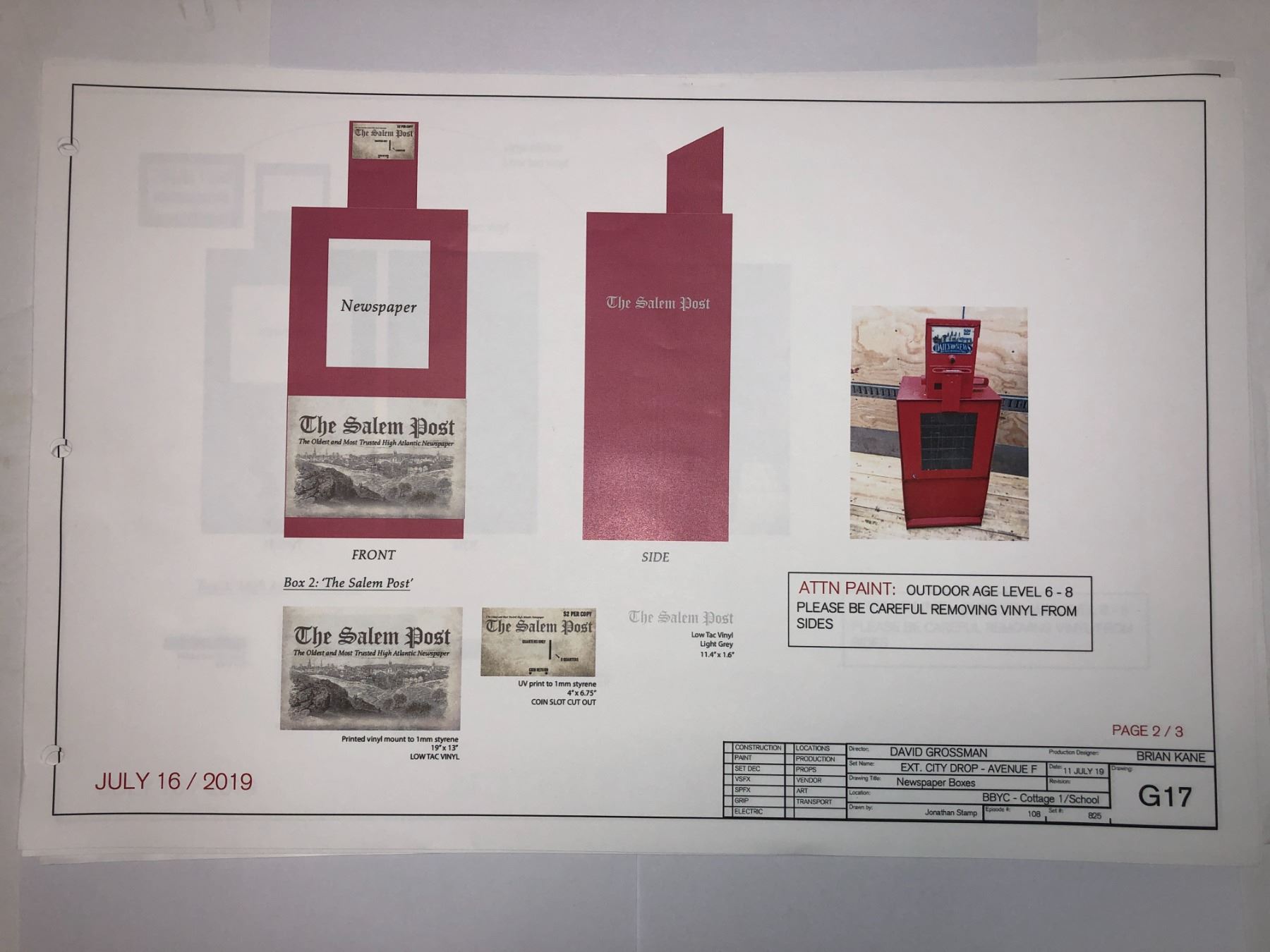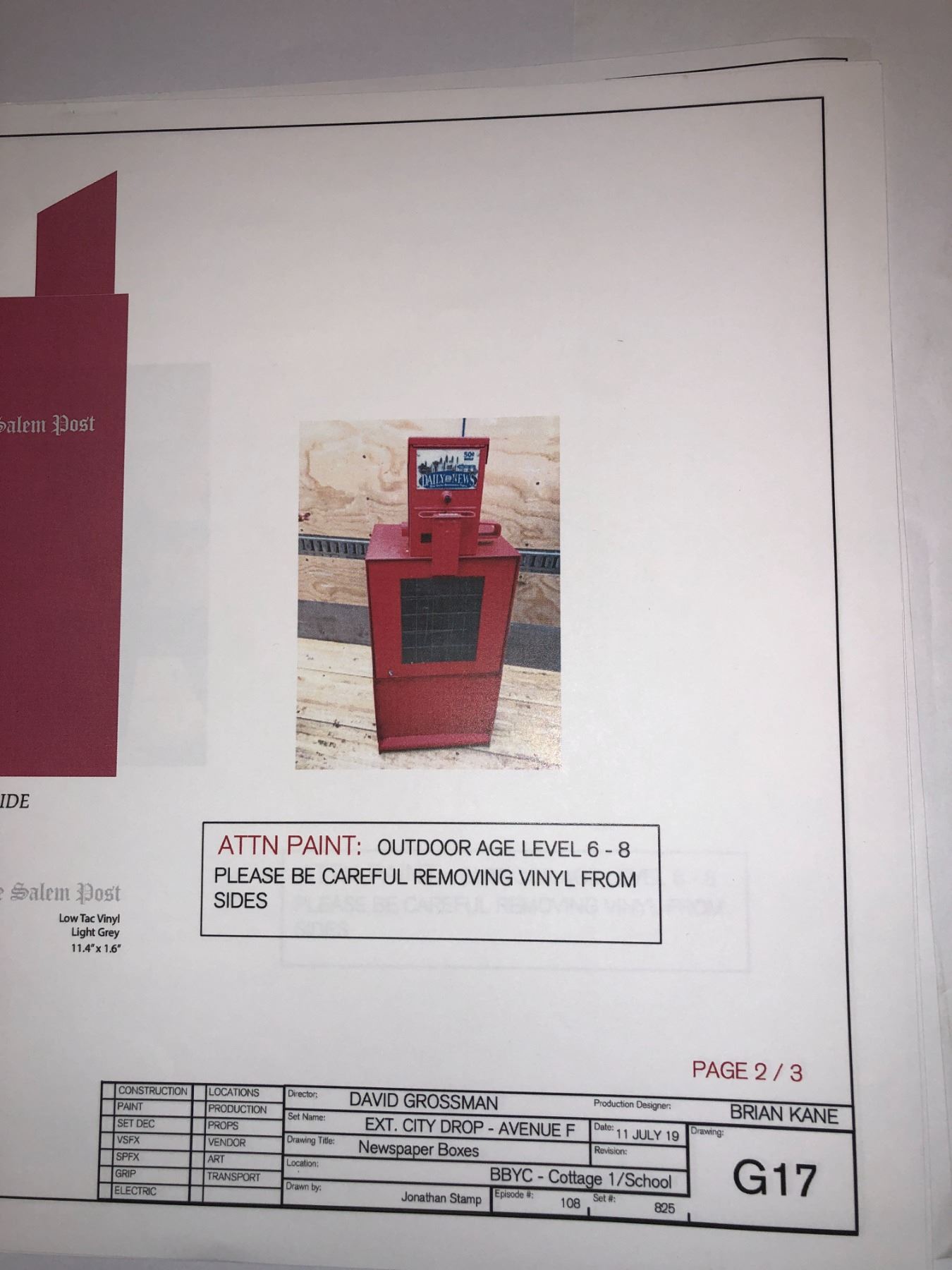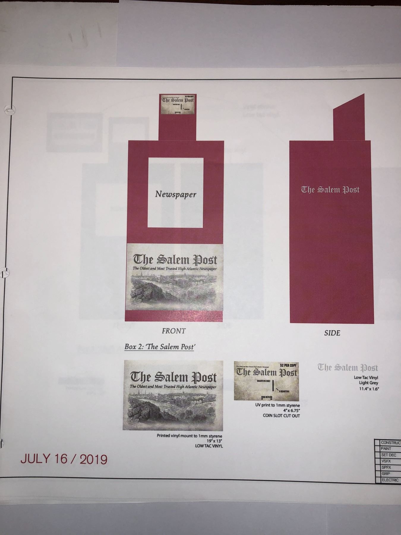 "Motherland: Fort Salem" Original Production notes / Schematics / Citydrop blueprints.