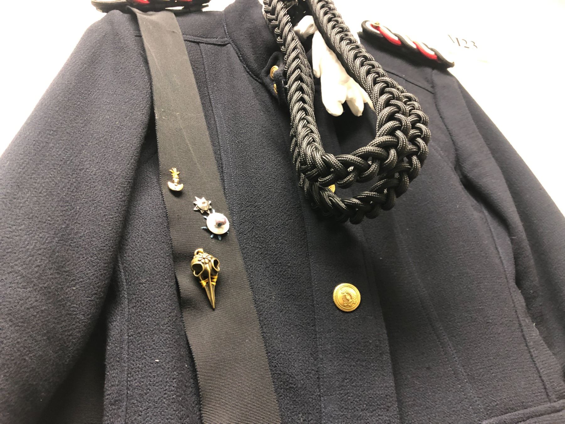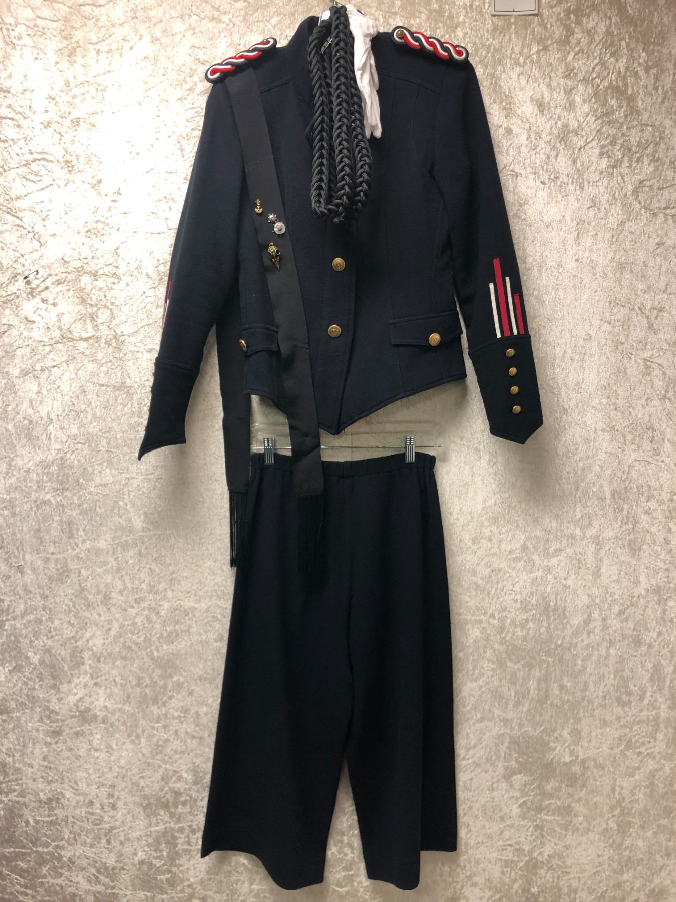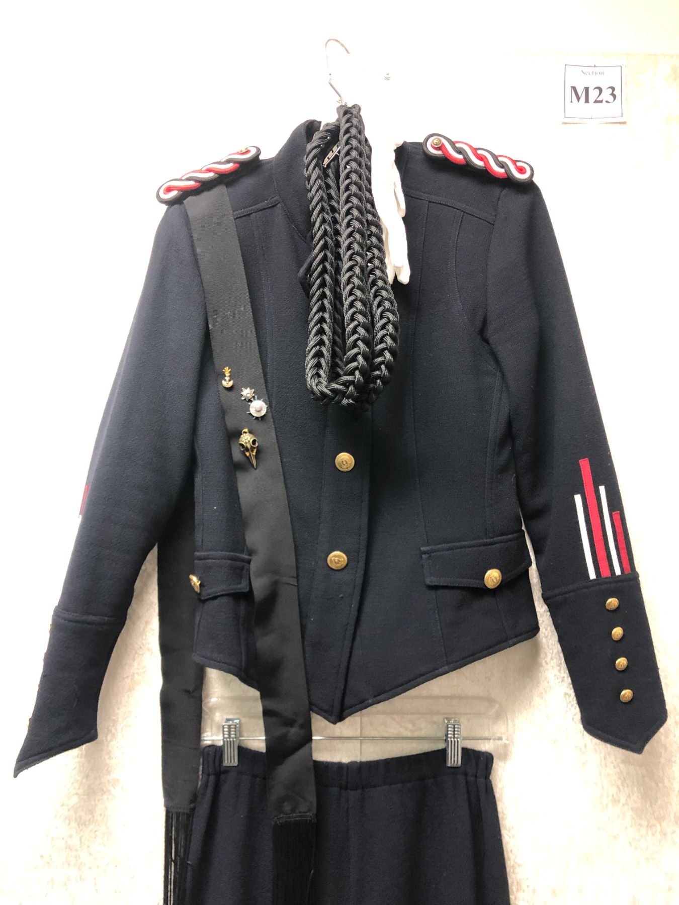 "Motherland: Fort Salem" - United States Army High Ranking Officer Uniform 6pc set - includes jacket/ trousers/ white gloves/ shoulder rank emblems/ French fourragère & sash w/ assorted witches merit pins (4 stripes on each sleeve)