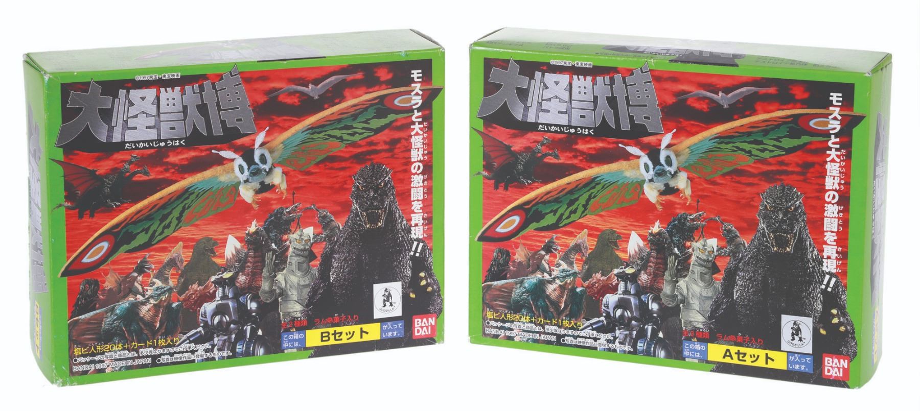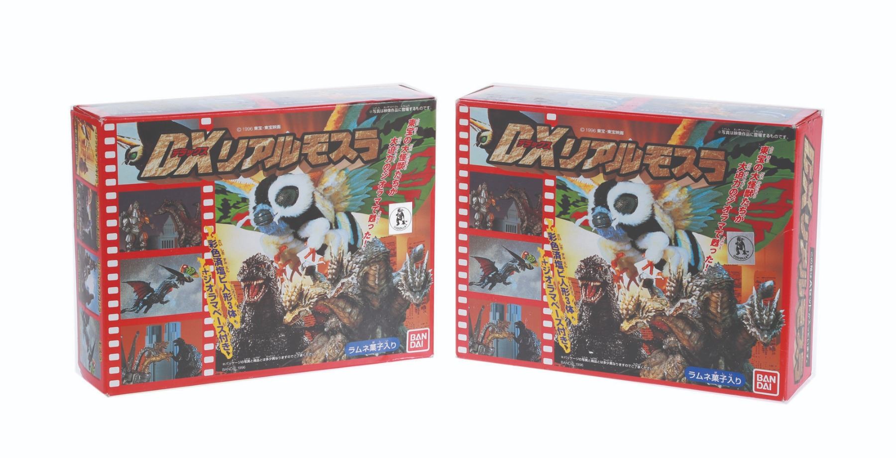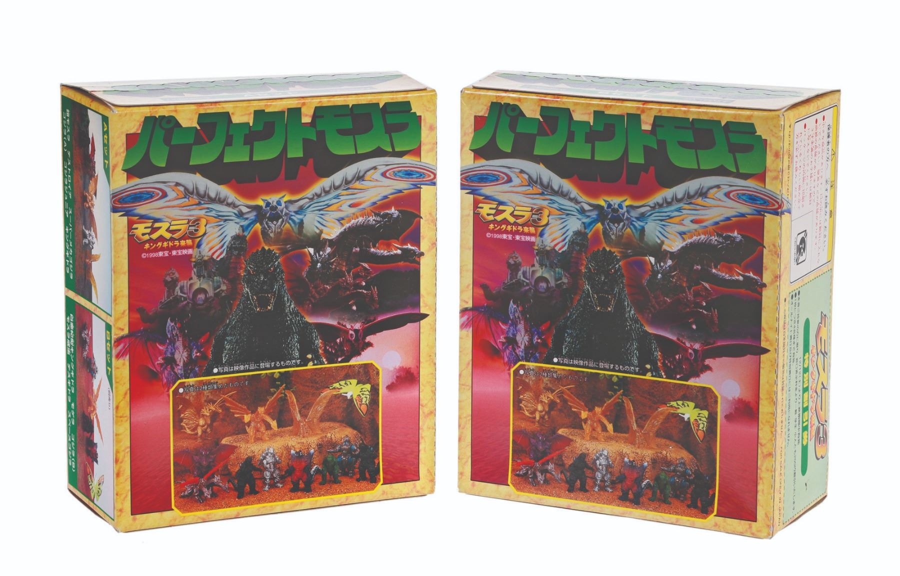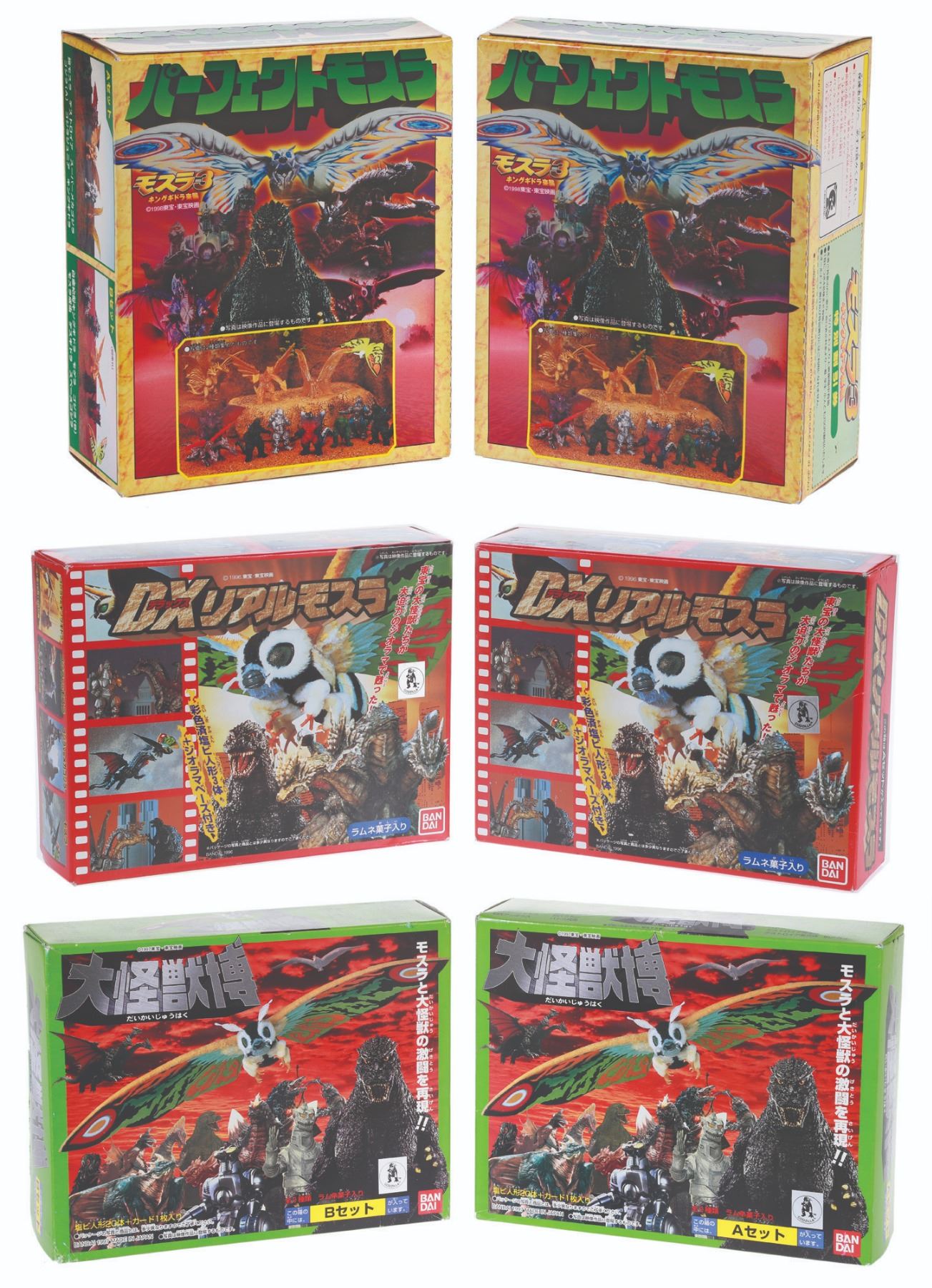 1996/1997. Bandai DX Real Mothra Boxed Sets A & B, Bandai Perfect Mothra Boxed Sets A & B, Bandai Monster Museum Boxed Sets A & B. Figures: 2” tall. VG+.