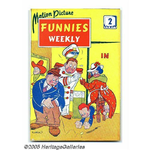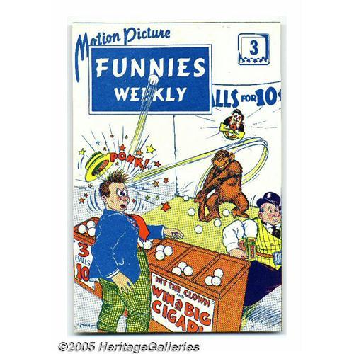 <B>Motion Picture Funnies Weekly #2-4 Covers Only (First Funnies, Inc., 1939).</B></I> These covers for three planned but never-published issues are a real piece of comic book history. Of course, issue #1 is a legendary comic which never actually reached newsstands but featured the first printed appearance of the Sub-Mariner. The title actually wasn't intended for newsstands, but was to be distributed at movie theaters as a promotional giveaway. Alas, the concept never took off, and while a few copies of #1 survive, #2-4 were never finished at all. This title is also significant for being the first comic production of the Lloyd Jacquet shop, aka Funnies Inc., who went on to produce " "<B>Marvel Comics</B></I> #1 as well as many other key Golden Age comics. As for these items, the cover art for #3 is by Max Neill, whose work was later seen in Centaur comics among others, and the cover art for #2 and 4 is by Martin Filchock -- if you were a kid in the 1970s you'll probably remember the ""compare these two pictures"" scenes Filchock drew for " "<B>Highlights</B></I> magazine. These covers are blank on the reverse. As for the condition, some minor dust shadows and a bit of foxing on #2 are the only negatives; overall, the items are in Excellent condition. Overstreet 2005 NM- 9.2 value for set = $1,000. <BR><BR><B>Important notice:</B> Heritage usually auctions material at the rate of 200-250 lots per hour. On some occasions eBay Live bid software or the Internet may not be able to keep up with the pace of the auction. We recommend placing a realistic absentee bid now as insurance to avoid disappointment. Occasionally the auctioneer may eliminate or reject an eBay Live bid, and the auctioneer may also reopen a lot after the close of the eBay live bidding (usually because we missed an audience bid), and may reject your bid even if it shows you as the winning bidder. By bidding via eBay Live, you agree that Heritage may award the lot to another bidder at its sole discreti