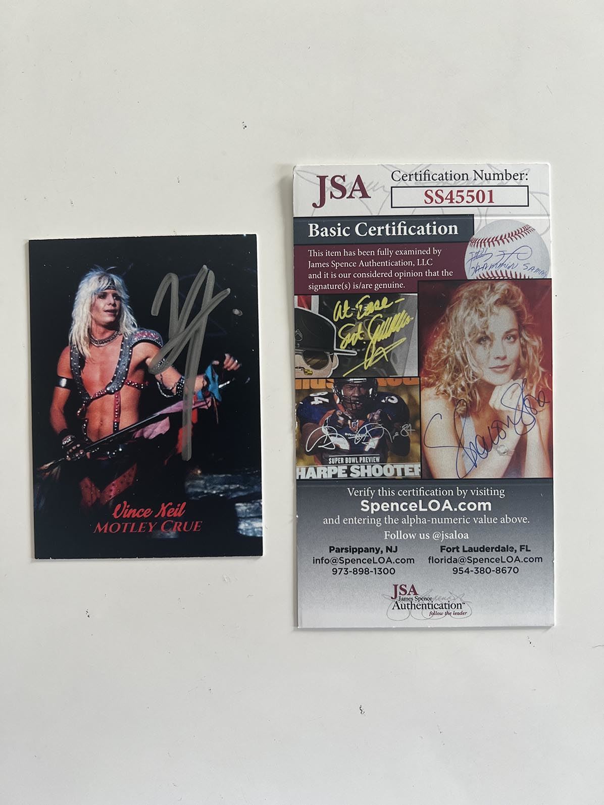 Motley Crue Vince Neil signed trading card. JSA authenticated. 2x3 inches