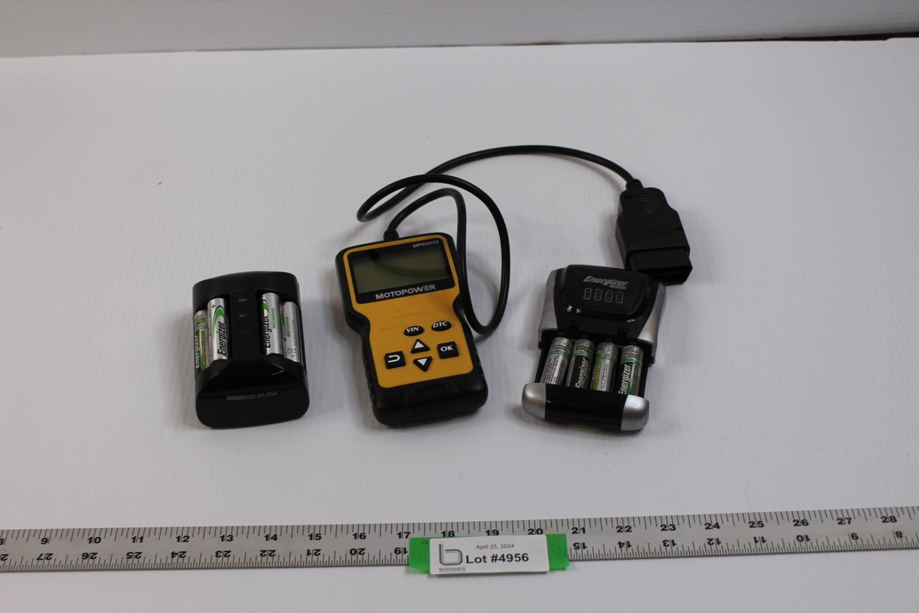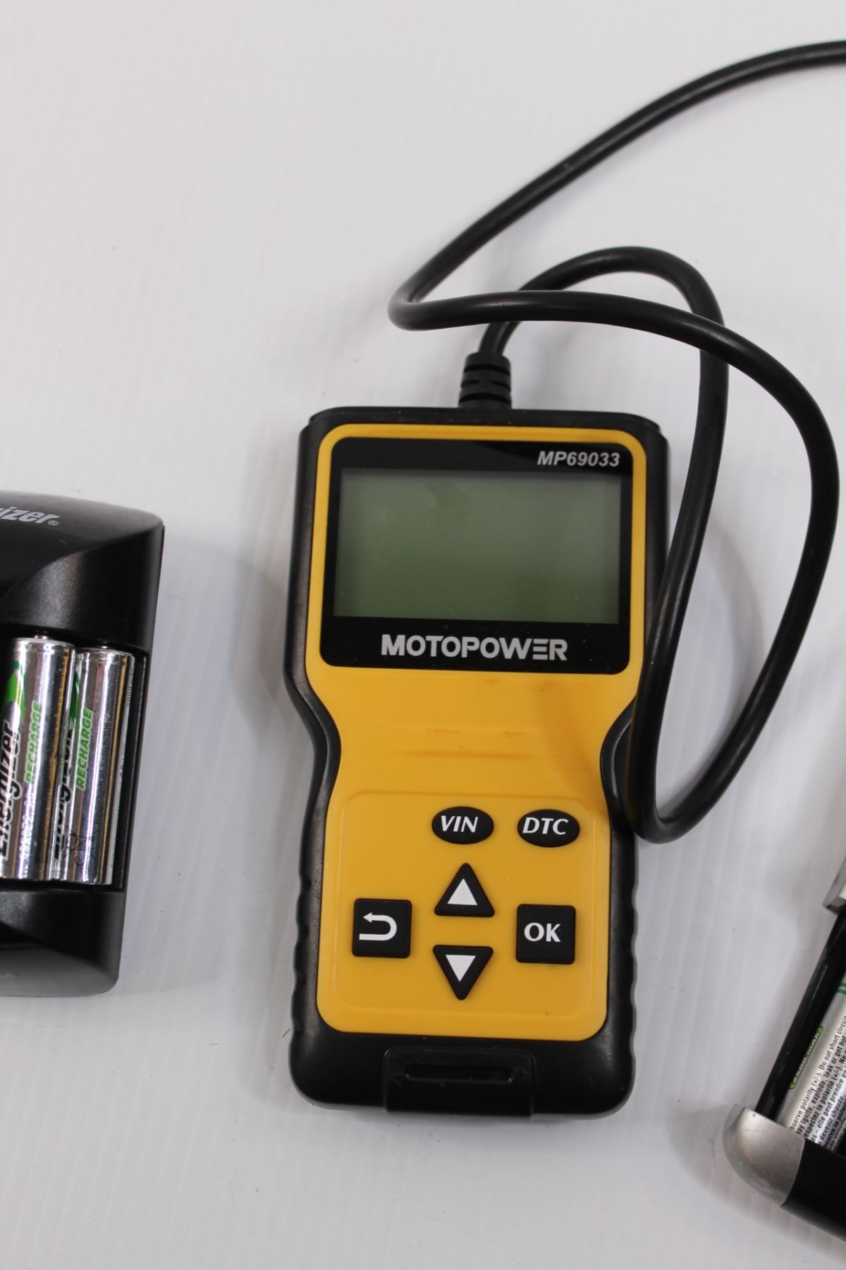 Motopower MP69033 OBDII/EOBD Vehicle Scanner/Code Reader (Untested) & (2 Sets of 4) Energizer Rechargeable AA Batteries w/Chargers (Untested)