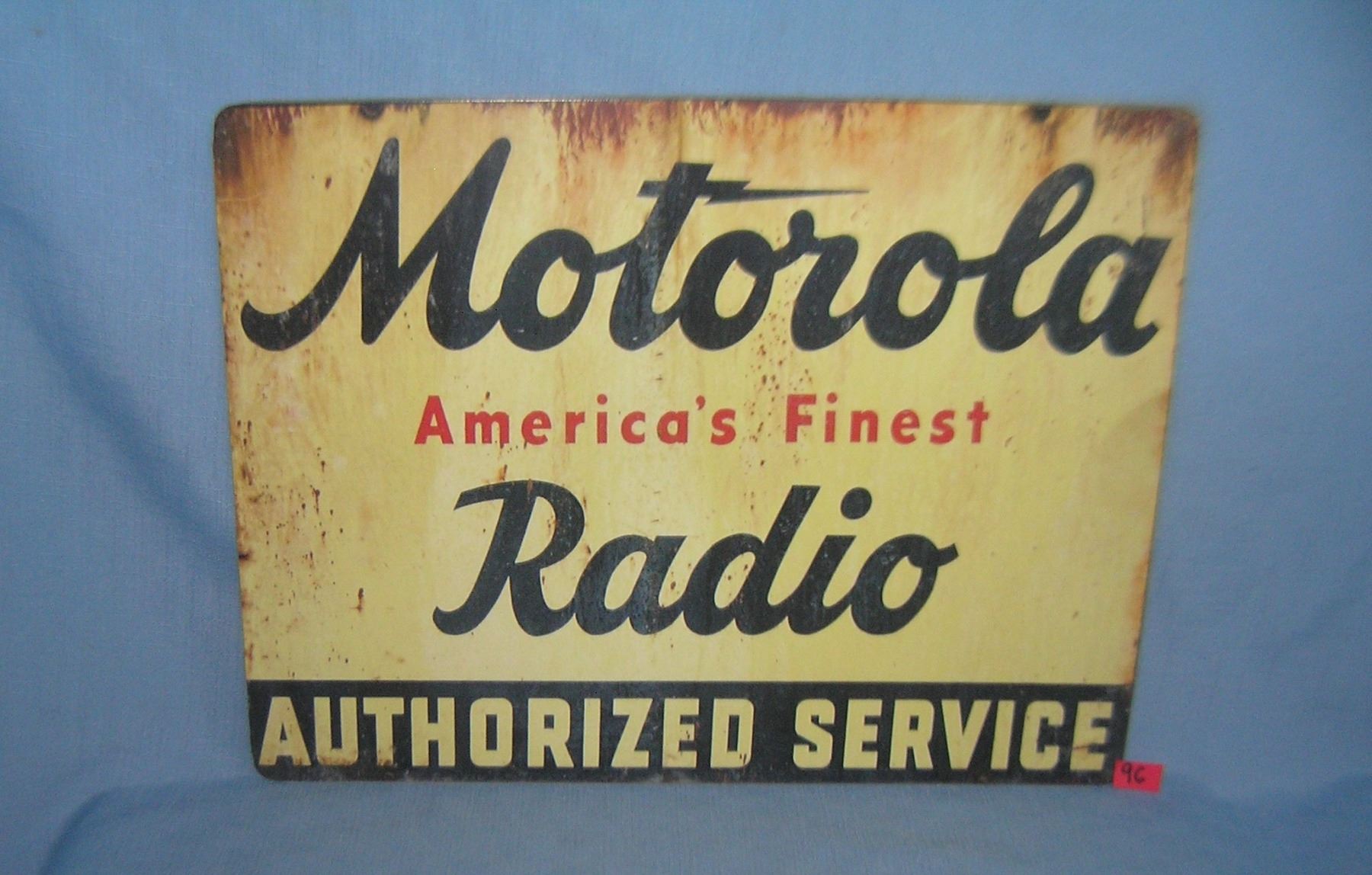 Motorola America's finast radio authorized dealer 12 by 16 inches retro style advertising sign printed on PVC hard board these signs are auctioned for there decorative and display purposes est. value $45.00-$60.00