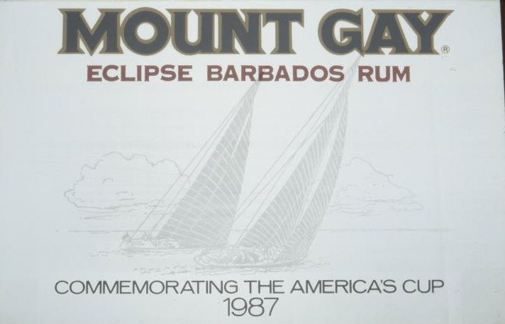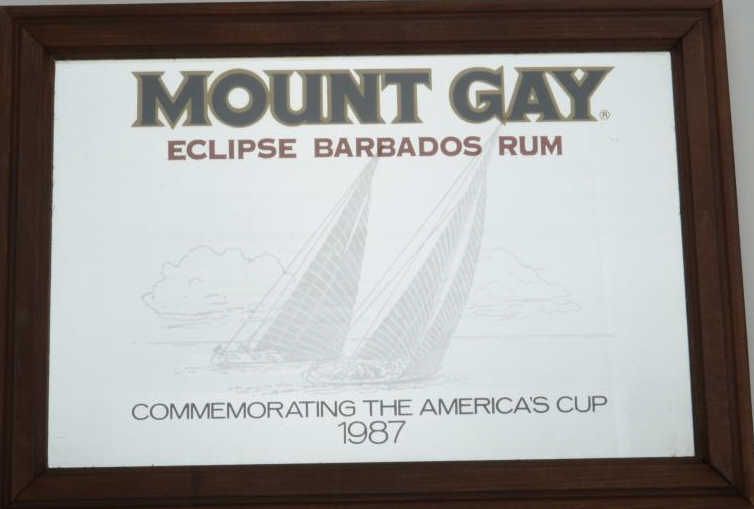 Mount Gay Eclipse Barbados Rum advertising mirror in wood frame approx. 15” x 21” commemorating the America’s Cup 1987. Est.: $50-$100.
