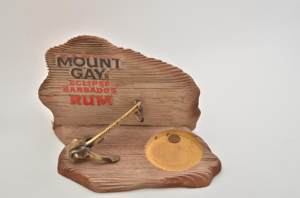 Mount Gay Rum Advertising display with brass anchor, approx. 10” x 7” x 6”. Est.: $50-$100.