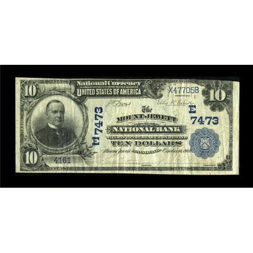 <B>Mount Jewett, PA</B></I> - $10 1902 Plain Back Fr. 624 <B>The Mount Jewett NB</B></I> Ch. # (E)7473<BR> A tough McKean County bank with just five large notes listed in the Kelly census. Very Fine, with visible pen signatures.<BR><BR><b>Shipping:</b> Coins & Currency (<a target="_blank" href="http://www.heritageauctions.com/common/shipping.php">view shipping information</a>)