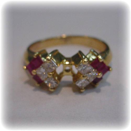 This stunning and large Ring Mount boasts Genuine Rubies and Diamonds set in Solid 14 Karat Yellow Gold. You jeweler may mount up to a 4 carat stone in it. See detailed specifications below. This item is brand new and comes with a 14 day, no questions asked, money back guarantee (less shipping and handling). Shipping Charges: $6 per item. When 3 or more items are won at an auction, shipping charges are reduced to $3 per item. (Canadian Shipping Charges: $15 for the first item and $3 for each additional item.) Shop with confidence! Seller is bonded, and maintains excellent feedback. Thanks for your interest. Live Auction info can be viewed at http://pages.ebay.com/liveauctions/help/welcome/overview.html